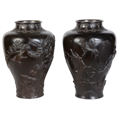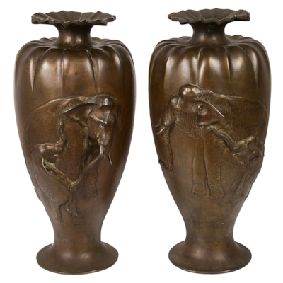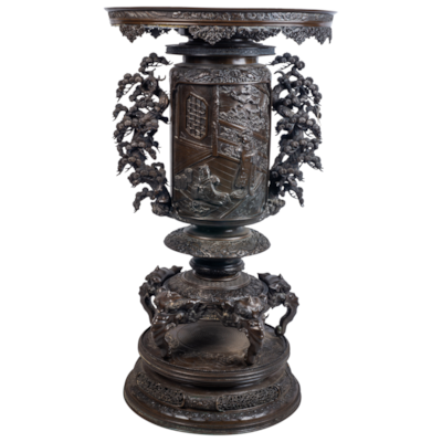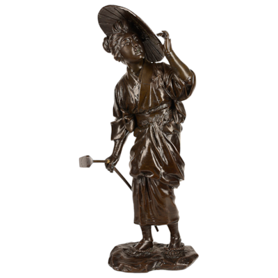 Amongst the Japanese Meiji bronzes from the late 19th to the early 20th century and Chinese 19th century bronzes you will discover striking Samurai figures by Zo Miyao, a cast bronze Meiji roaring lion and elaborate bronze vases from China. Browse Meiji bronzes from Japan and Chinese bronzes online or visit our antiques cavern in Brighton. We recommend booking an appointment and will be delighted to show you around.