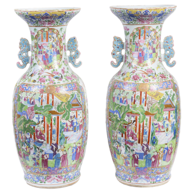 Large pair Chinese Cantonese / Rose medallion vases, 19th Century.