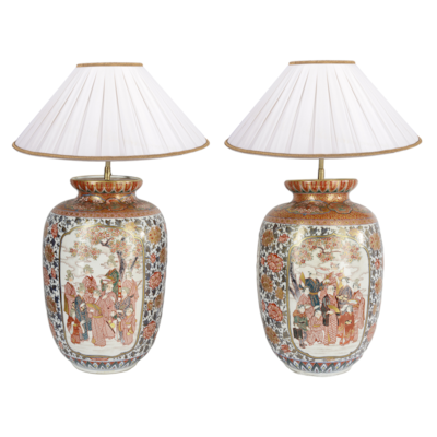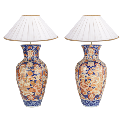Pair impressive 19th Century Japanese Imari vases / lamps.