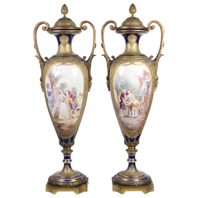 Large Pair Sevres Style Vases, 19th Century
