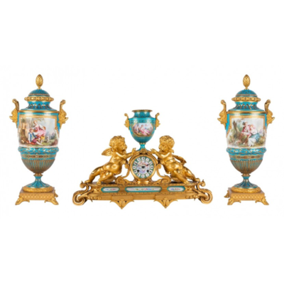 Large Louis XVI Style Ormolu Clock Set by Deniere
