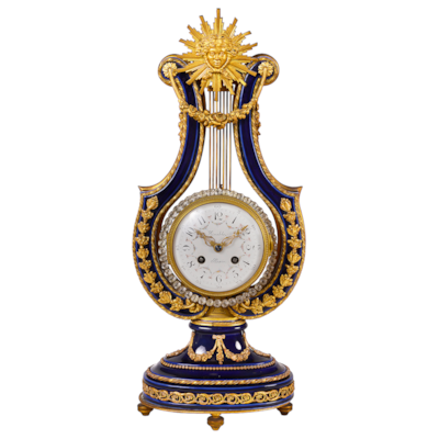 A French Sevres style porcelain and ormolu-mounted lyre clock