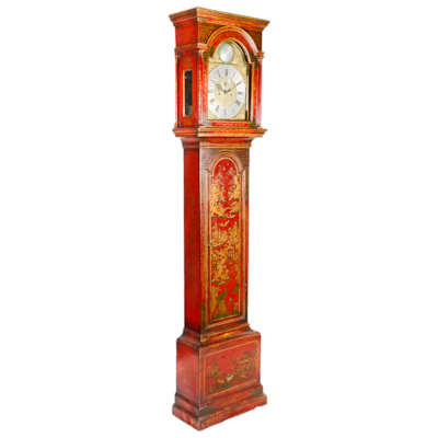 Red Lacquer Chinoiserie Longcase clock, circa 1800