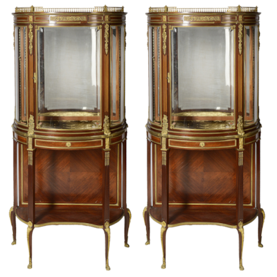 View DetailsPair French Louis XVI style Mahogany display cabinets, 19th century, Paul Somani