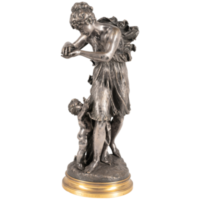 19th Century silvered bronze statue 'The Spring of Life' by A.G.Lanzirotti 37cm