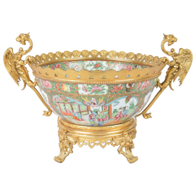 Chinese 19th Century Canton, Rose medallion bowl, ormolu mounted