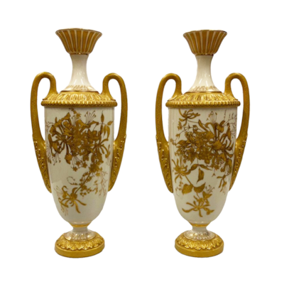 Pair of Royal Worcester porcelain vases, circa 1900. 12"(30cm) high