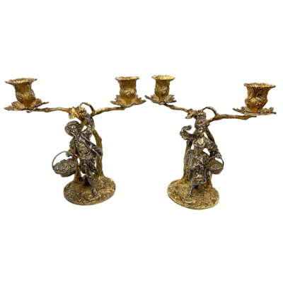 Pair Asprey's solid silver and gilt Candelabra, 8.5"(22cm) high