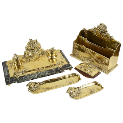 Art Nouveau gilt bronze desk set by Albert Marionnet.