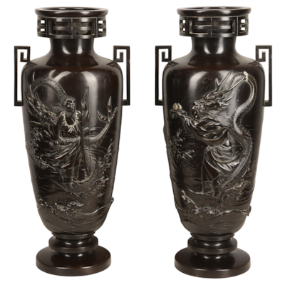 Pair C19th Japanese cast bronze vases / lamps 57cm(22.5")
