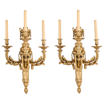 Pair 19th Century classical Louis XVI style ormolu wall lights. 76cm(30") high