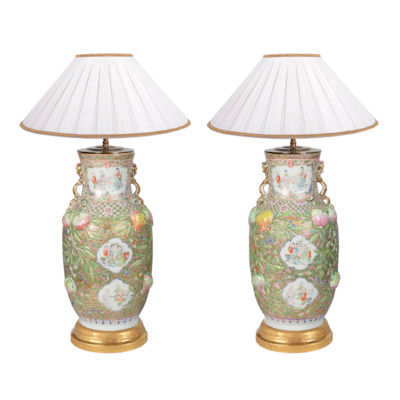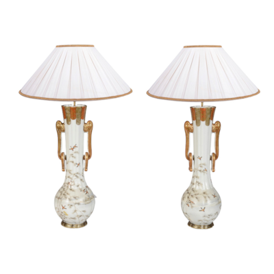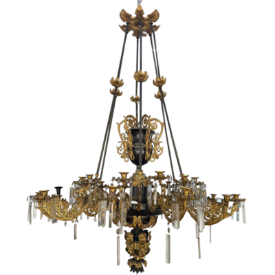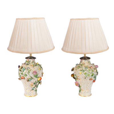 Our antique lighting collection dates back to the 19th century and consists of crystal and cut-glass chandeliers, wall lamps, some decorated with ormolu, porcelain table lamps and bronze candelabras. By makers such as Baccarat. For statement lighting with added character, we wire vases, converting them into lamps. The light falls beautifully on the vase illuminating the artwork. Our comprehensive service includes professional packaging, delivery, and installation. We also restore pieces to showroom condition. View antique lighting online or visit our warehouse - we suggest making an appointment and will be delighted to show you around.