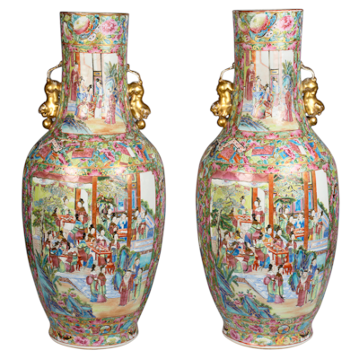 Pair 19th Century Rose Medallion porcelain vases / lamps.
