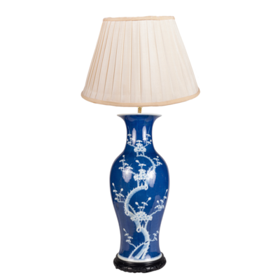 Chinese Blue and White Prunus blossom vase/lamp, circa 1890.