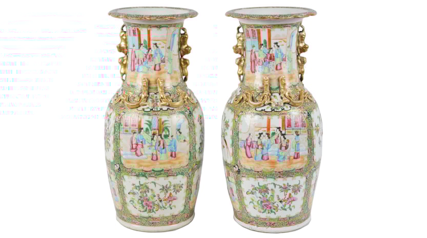 Pair 19th Century Chinese Canton / Rose Medalion vases