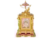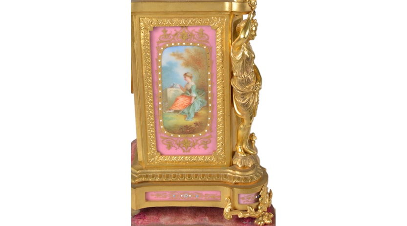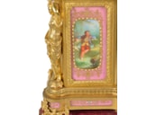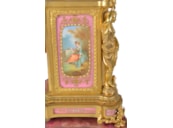 Louis XVI style Pink Sevres mantel clock. 24cm wide x 17cm deep x 44cm high.