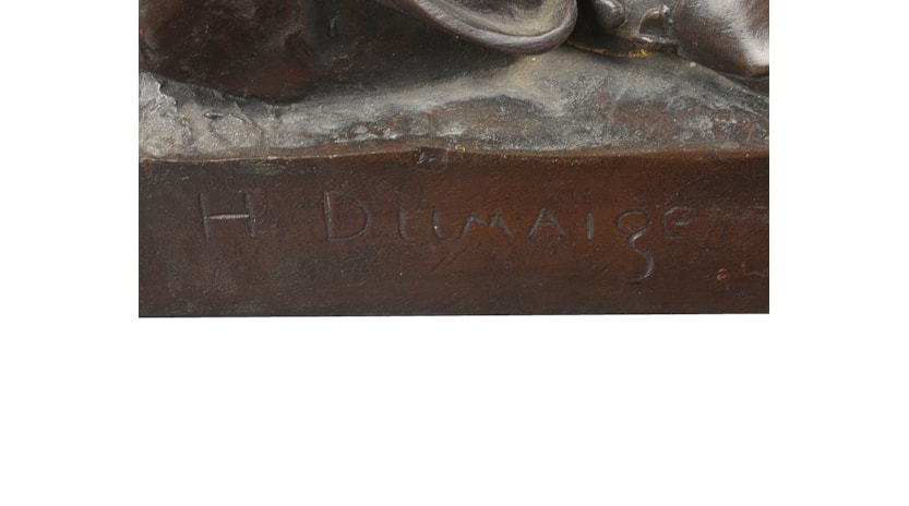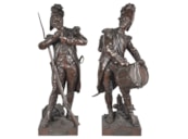 A very good quality pair of 19th century French bronze statues of a rifleman and drummer, signed E H Dumaige.