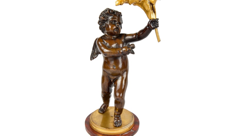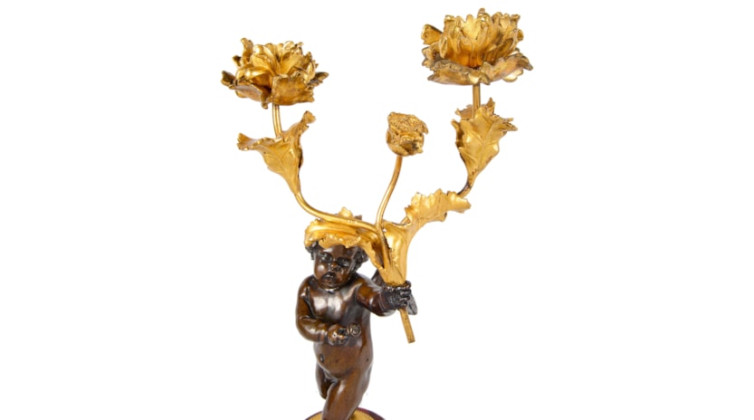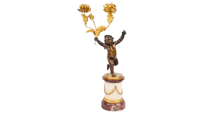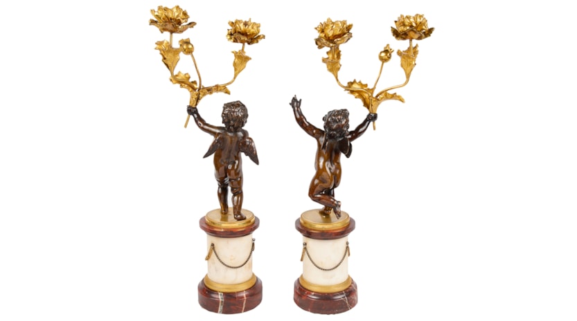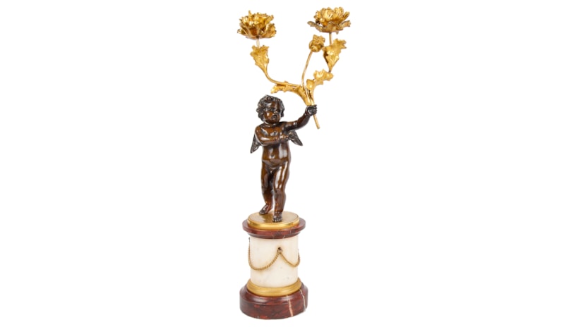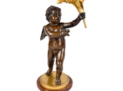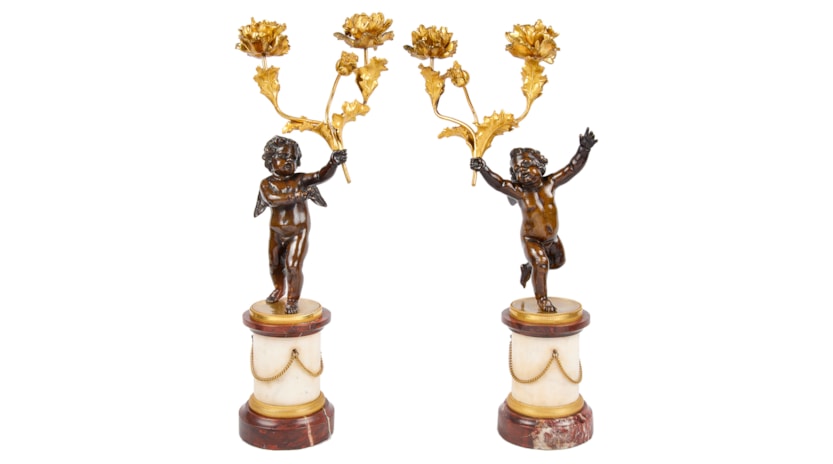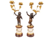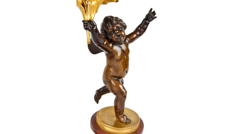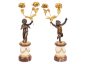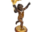 Pair 19th Century Bronze cherub candelabra. 19cm x 46cm high.