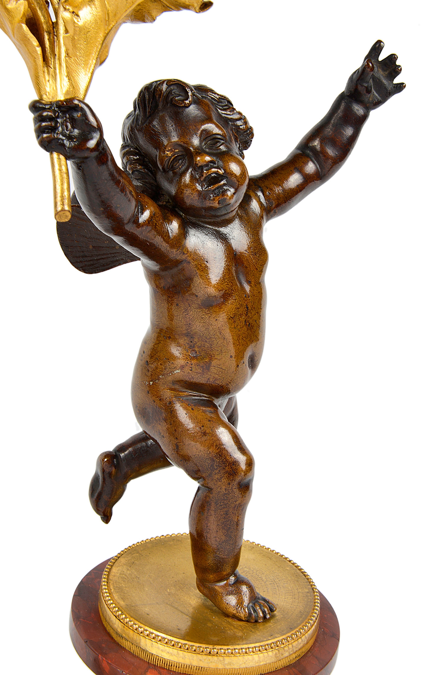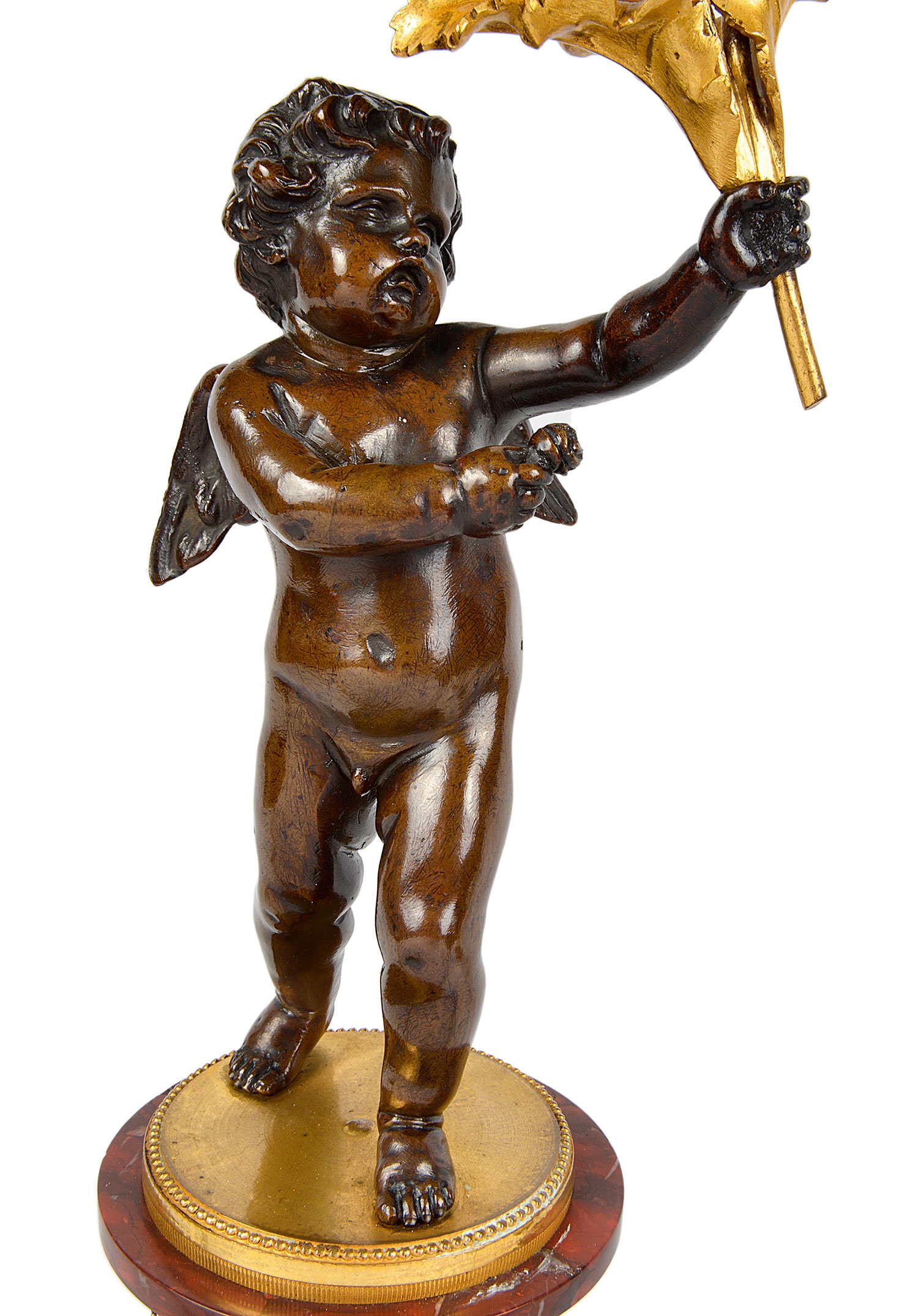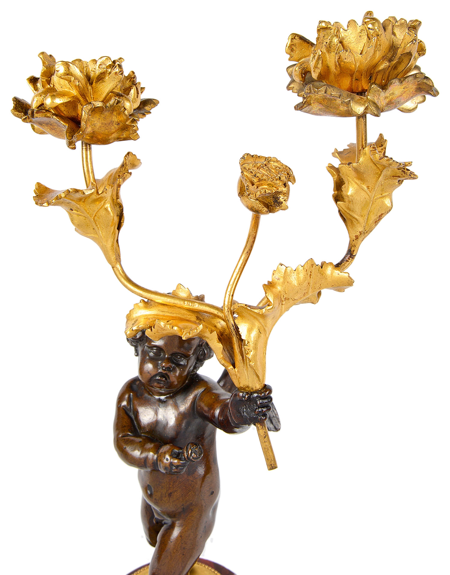 Pair 19th Century Bronze cherub candelabra. 19cm x 46cm high.