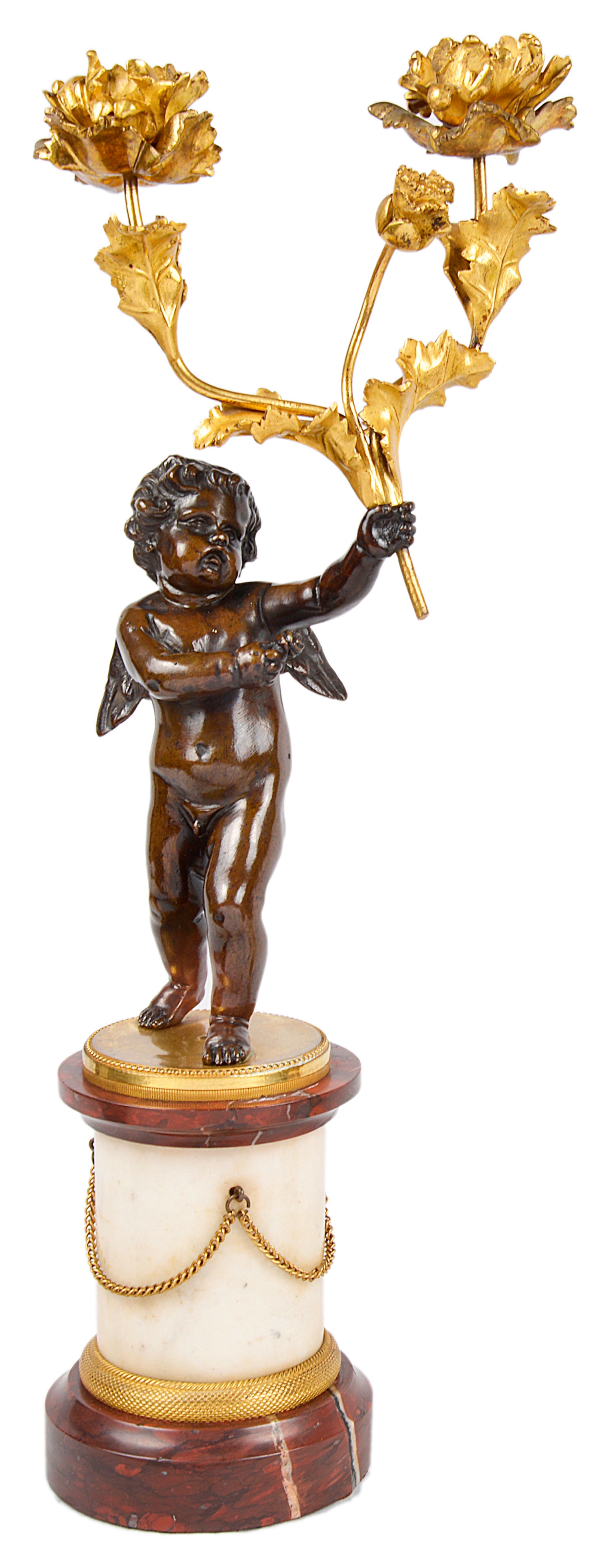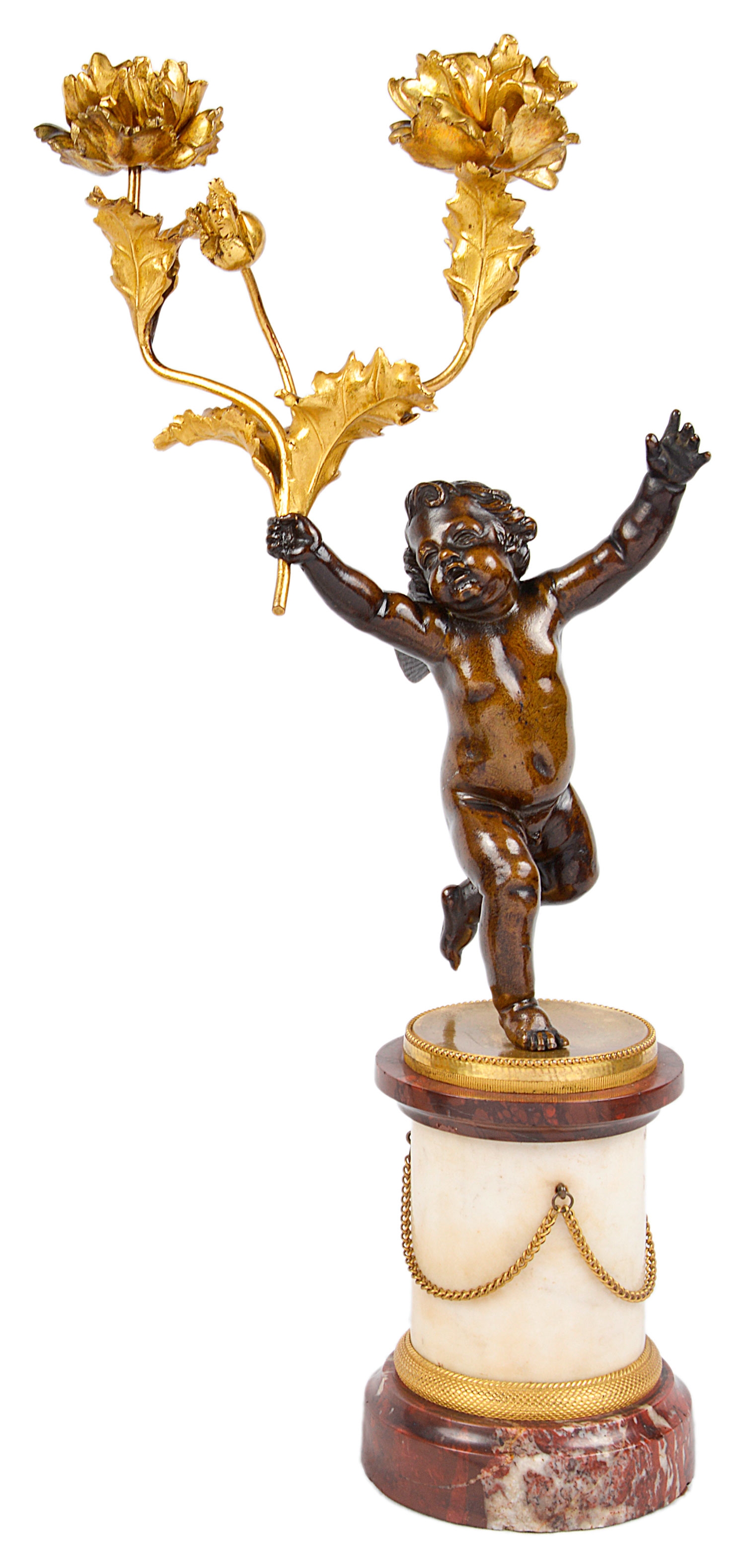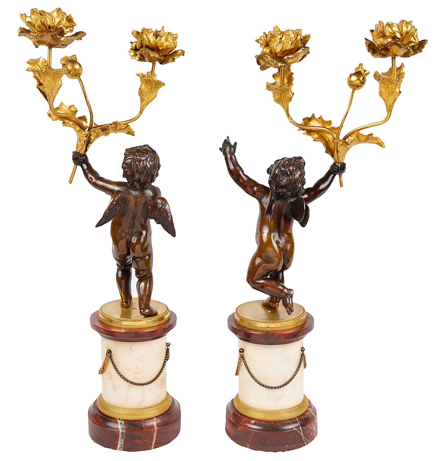 Pair 19th Century Bronze cherub candelabra. 19cm x 46cm high.