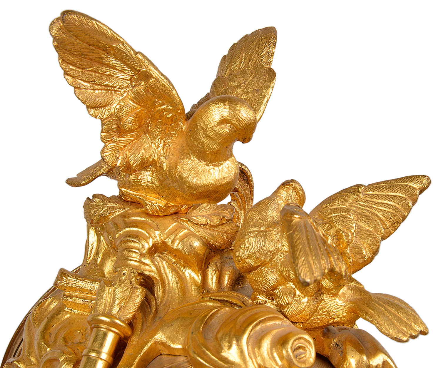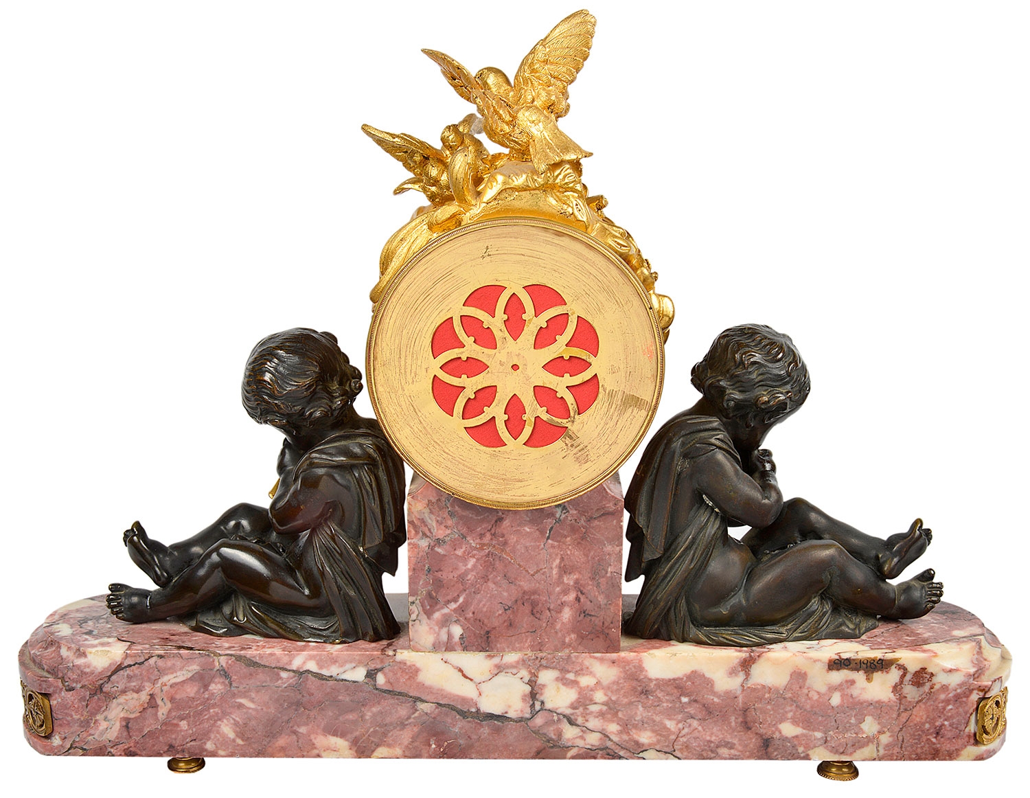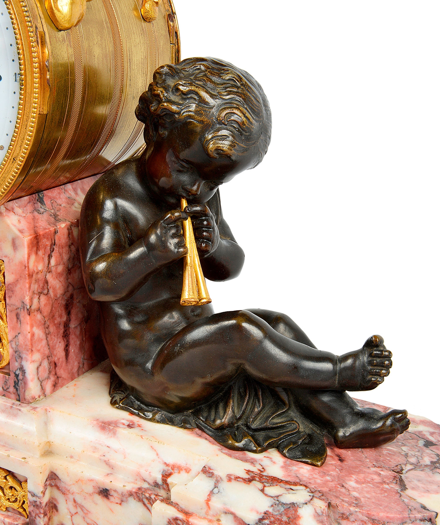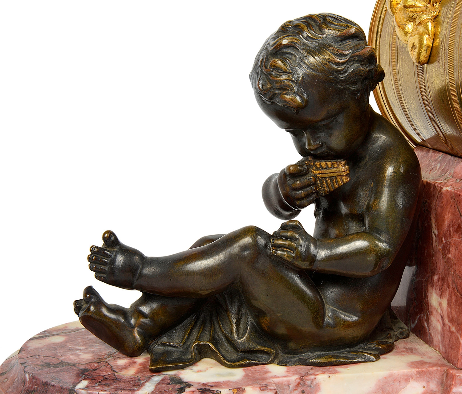 Louis XVI style mantel clock with Doves and Putti playing pipes
