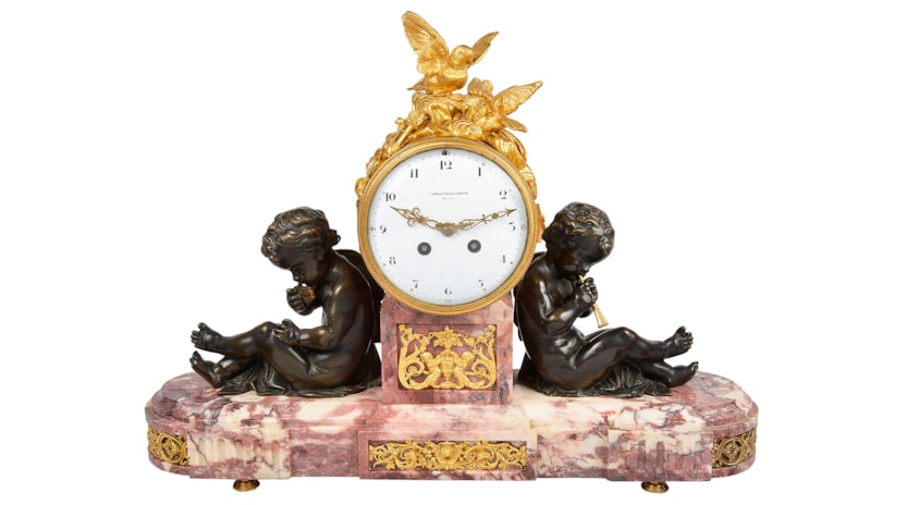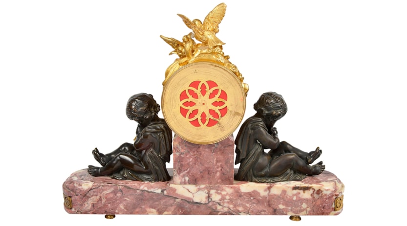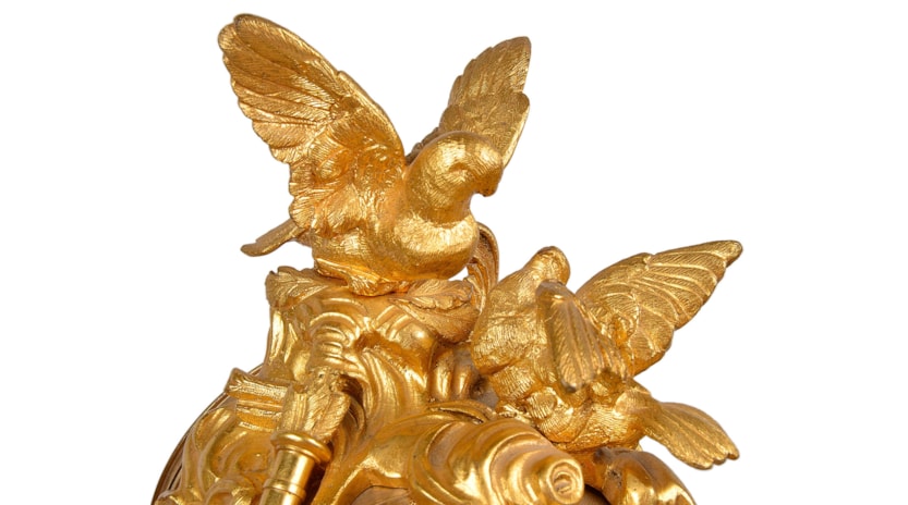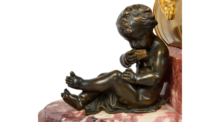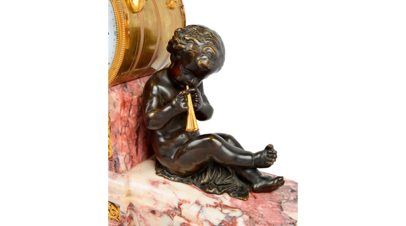 Louis XVI style mantel clock with Doves and Putti playing pipes