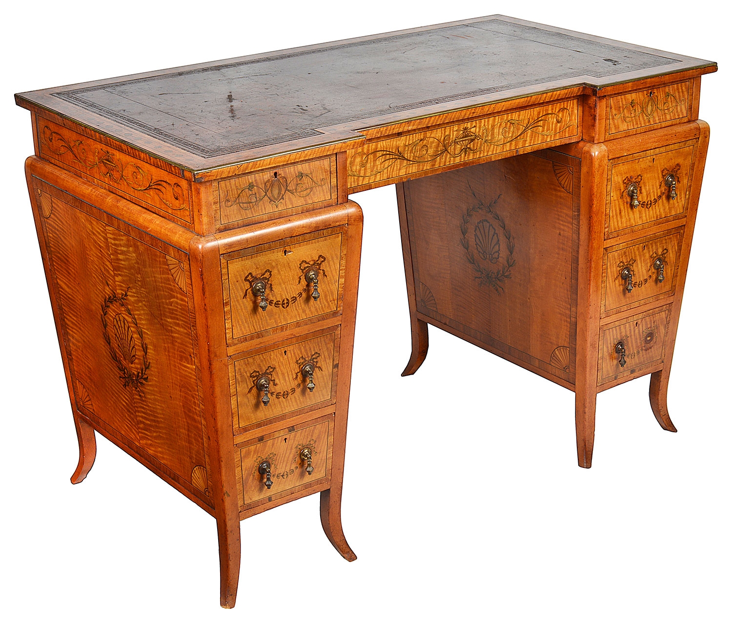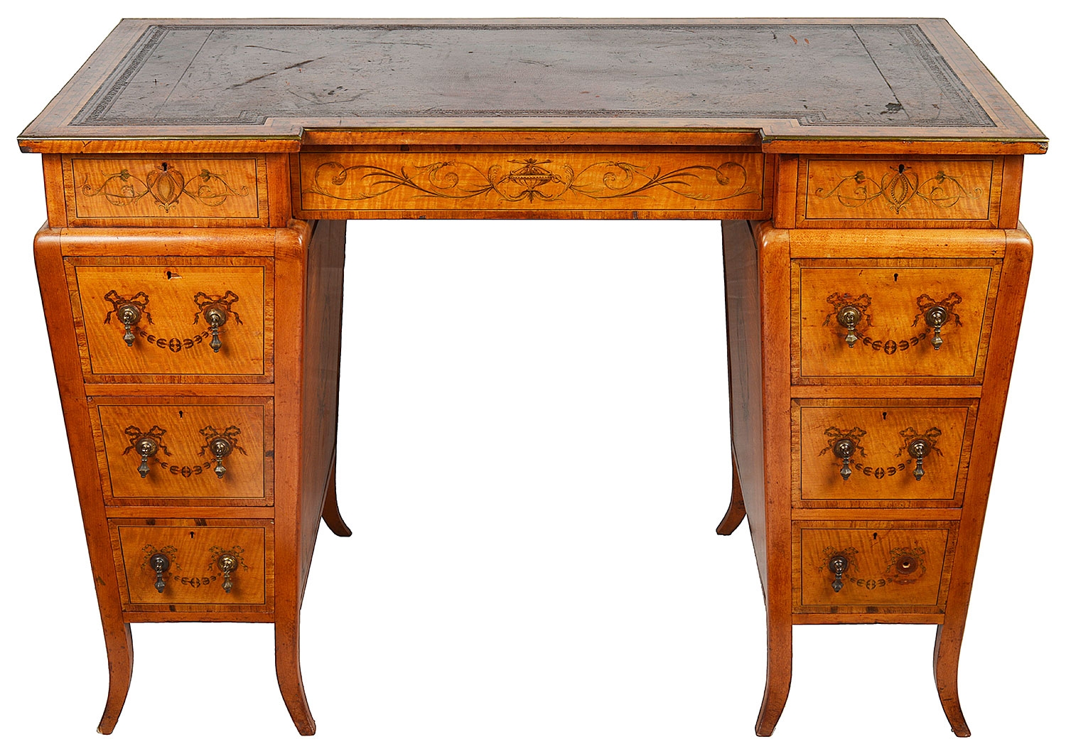 Sheraton revival Satinwood desk, 110cm x 61cm x 75cm high