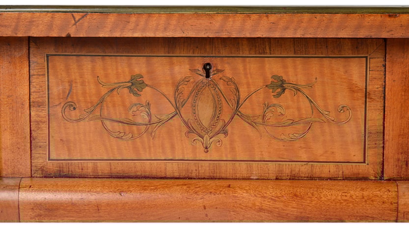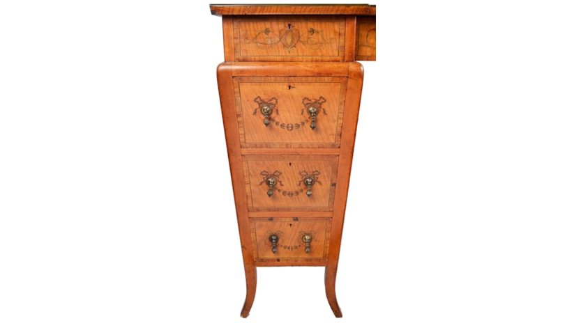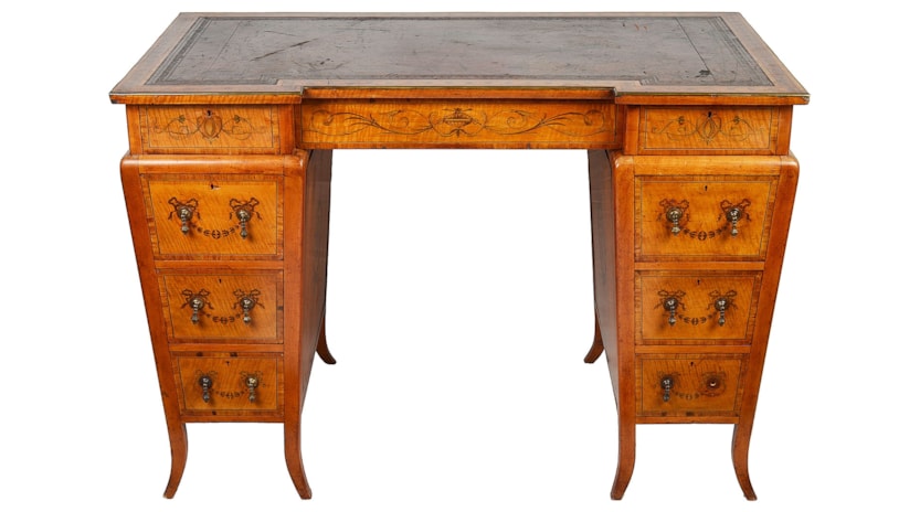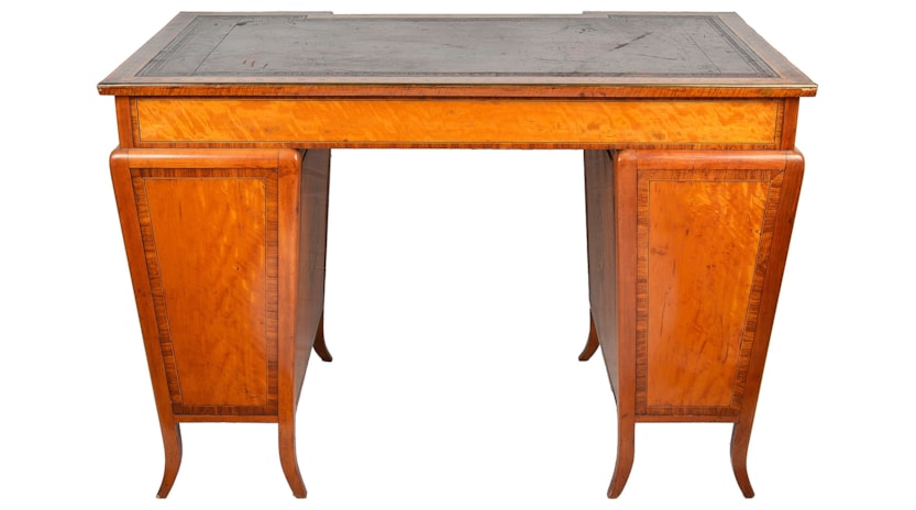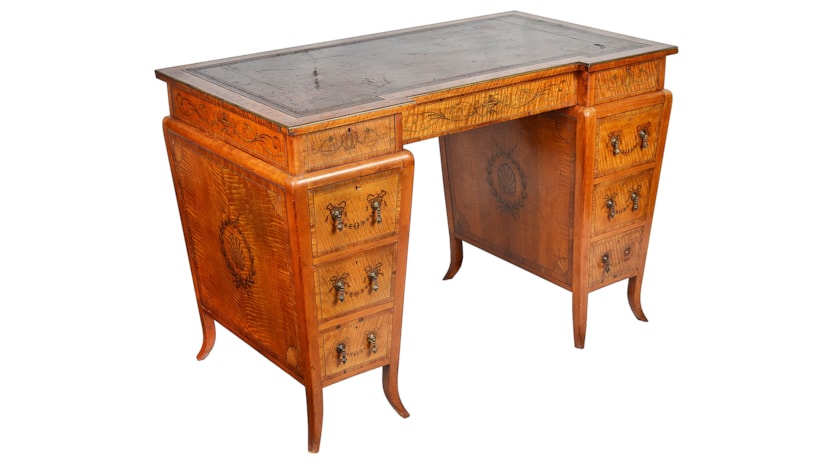 Sheraton revival Satinwood desk, 110cm x 61cm x 75cm high