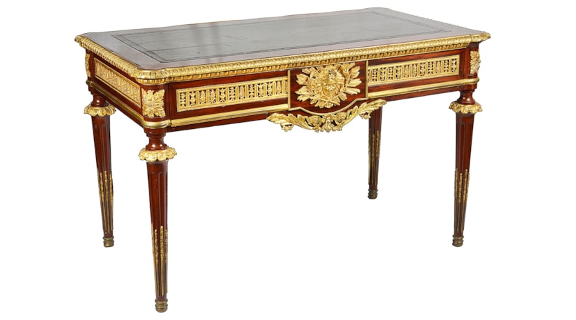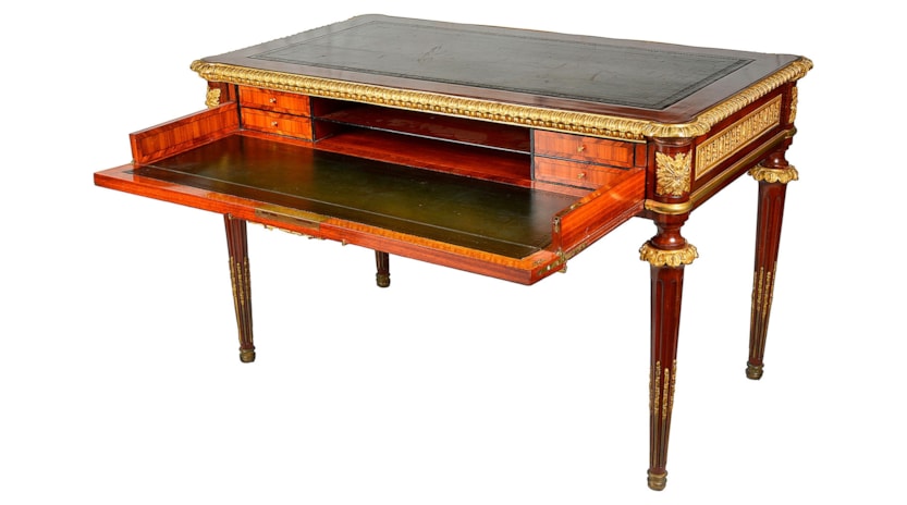 Quality C19th French bureau plat, with secretaire drawer. 131cm wide x 75cm deep x 81cm high