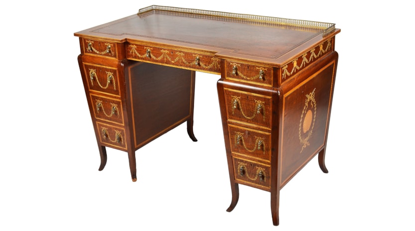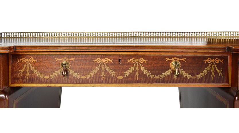 Sheraton revival inlaid desk, 19th Century. 110cm wide x 60cm deep x 76cm high