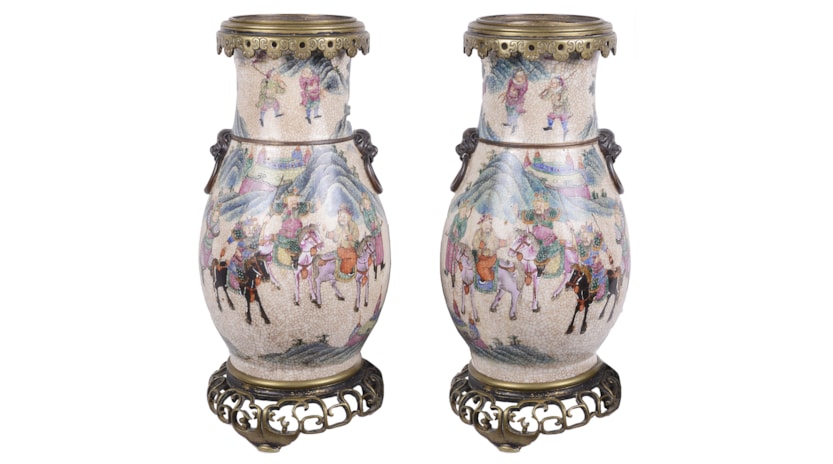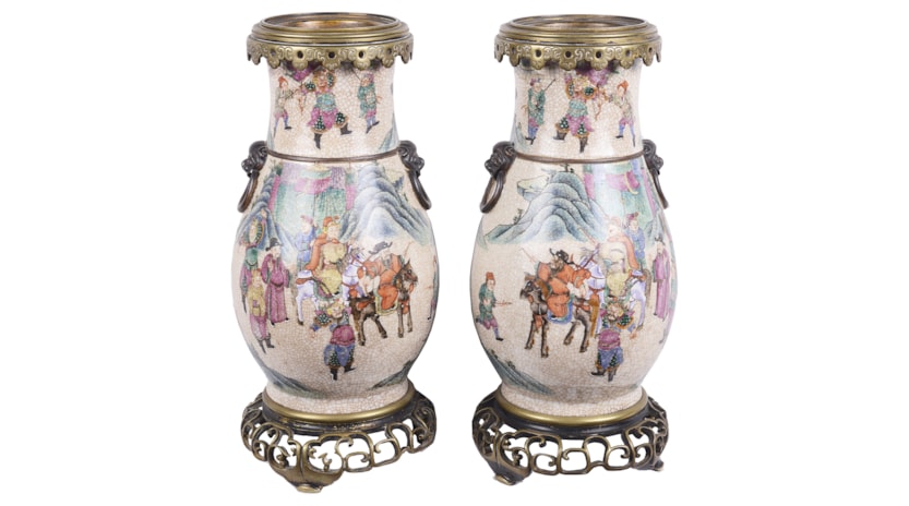 Pair of 19th Century Chinese Crackelware Vases / Lamps