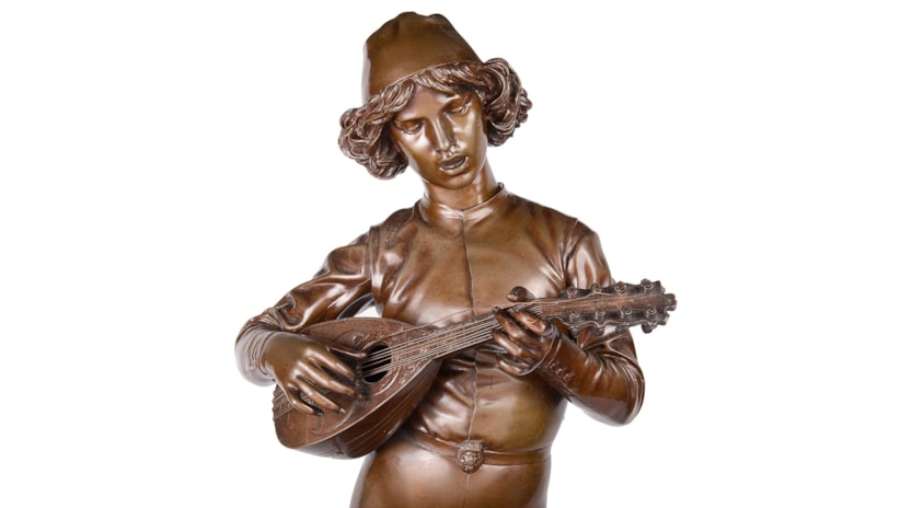 19th Century, Barbedienne, Bronze Statue of a Minstrel