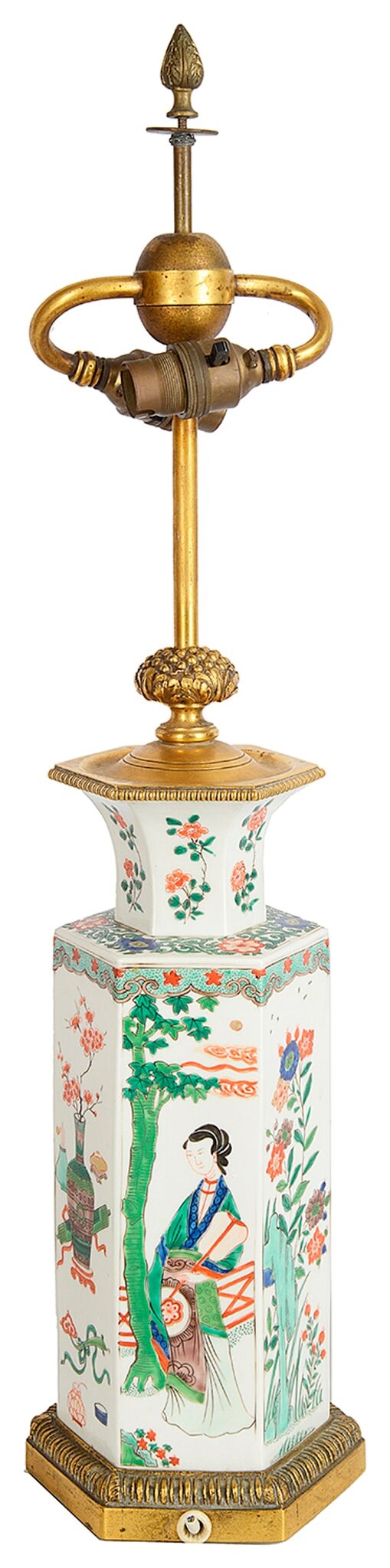 19th Century Chinese Famille Verte Style Vase / Lamp