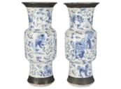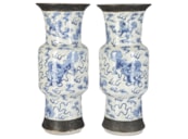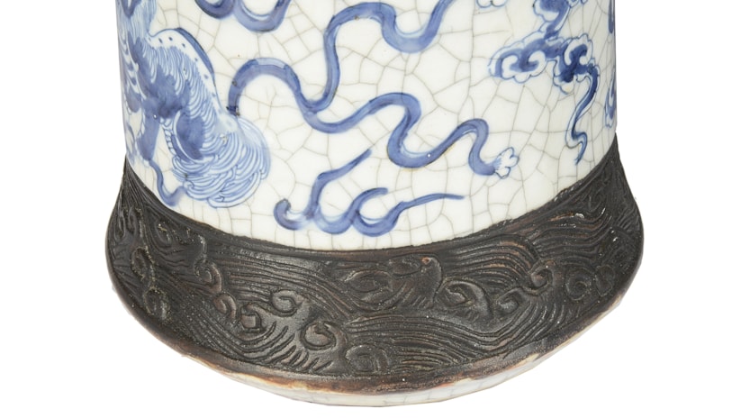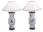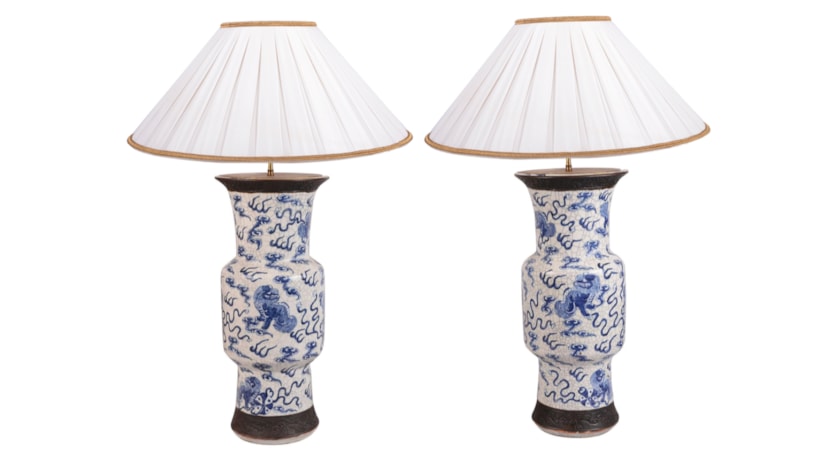 Home > Pair of 19th Century Chinese Blue and White Crackelware Vases / lamps
