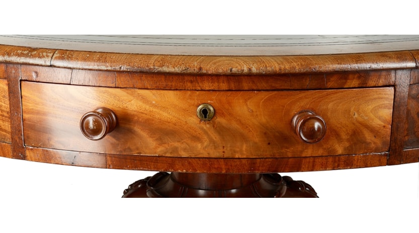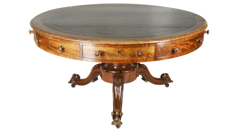 Victorian Mahogany Drum Table. DIMENSIONS H 28.75 in. x Dm 53.55 in. H 73 cm x Dm 136 cm