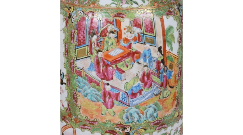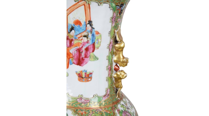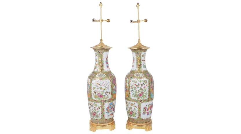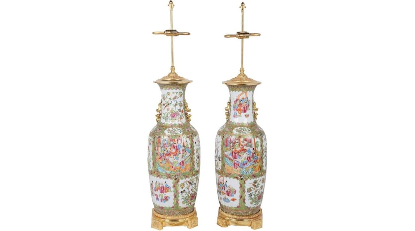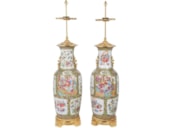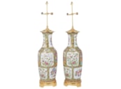 Large Pair of Canton / Rose Medalion Chinese Vases / Lamps, 19th Century
