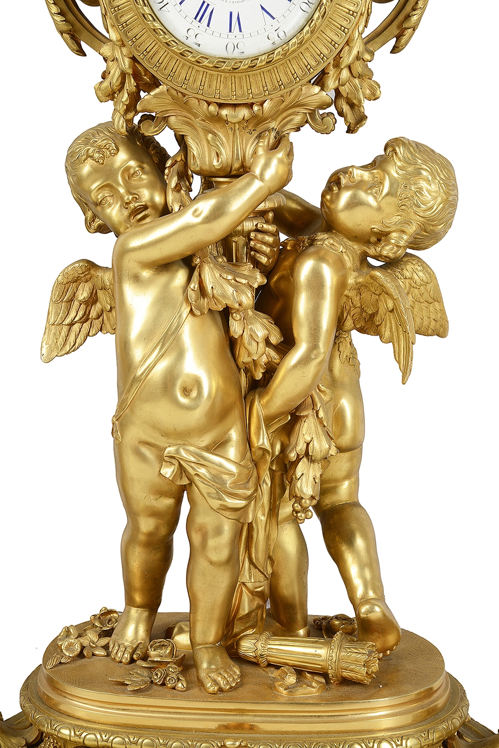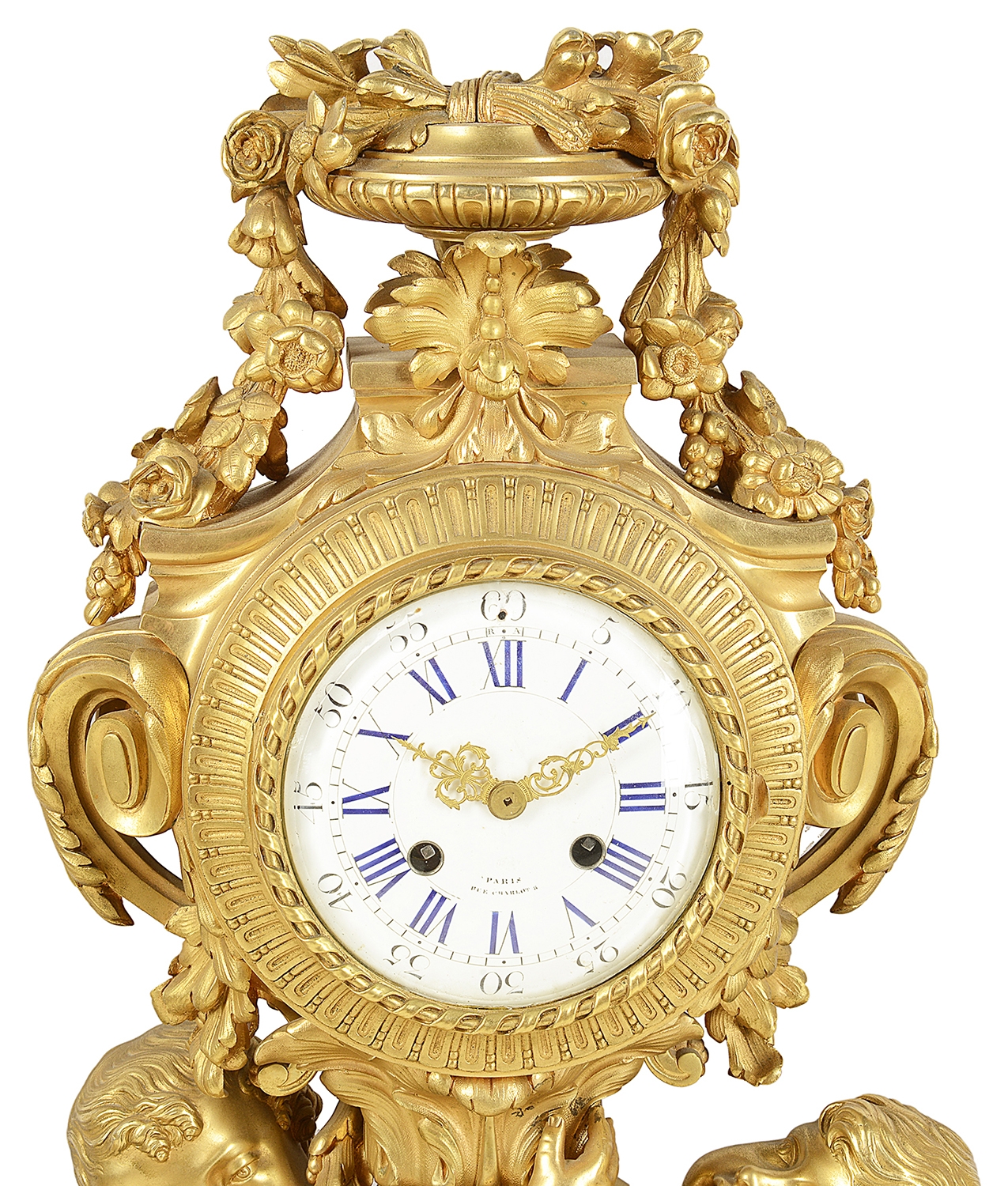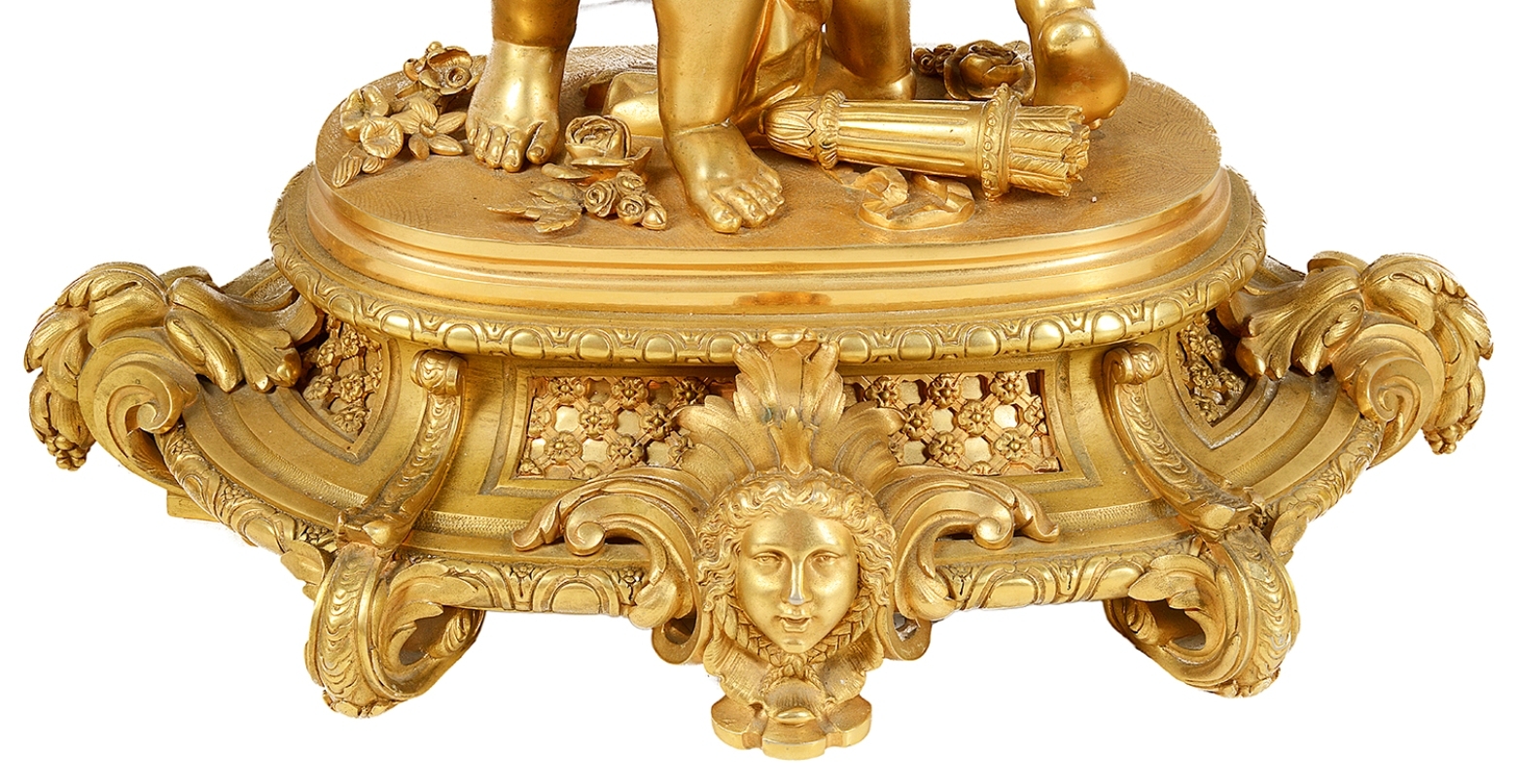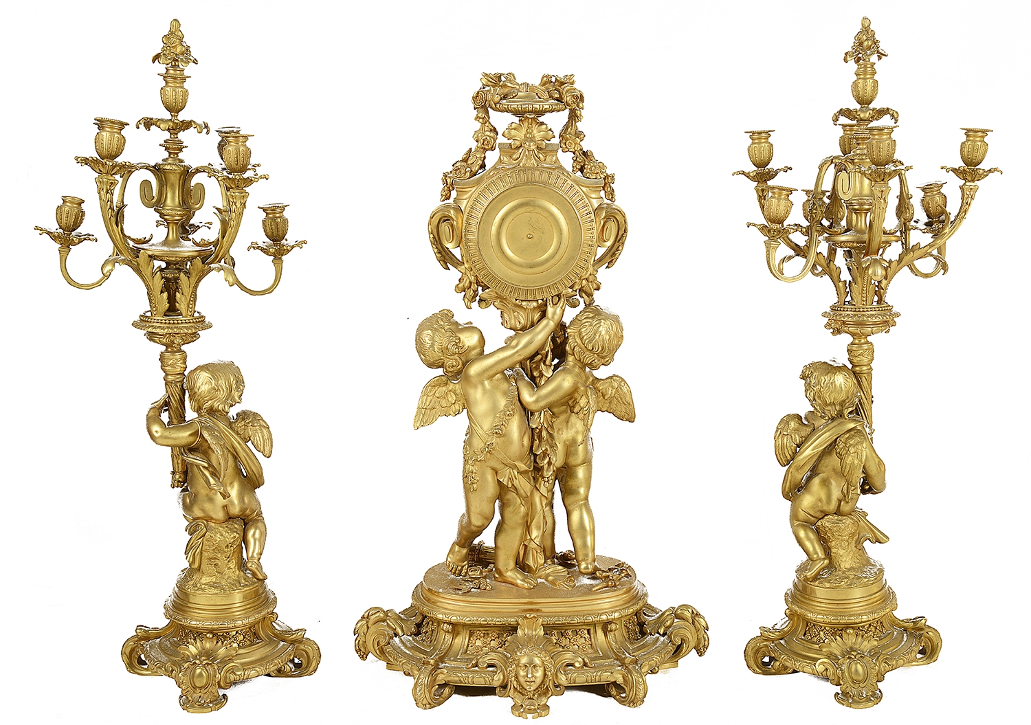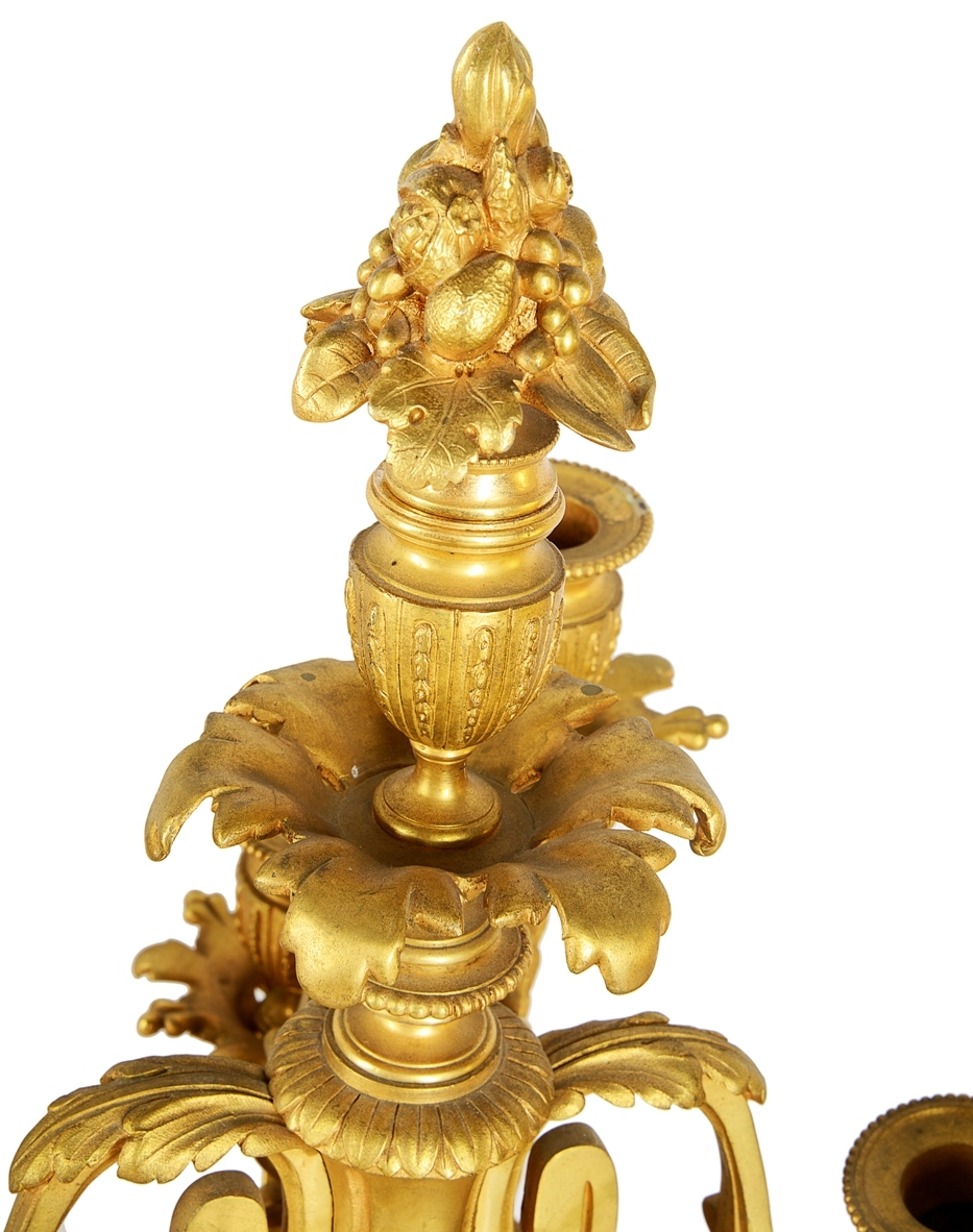 Large Louis XVI style gilded clock garniture.