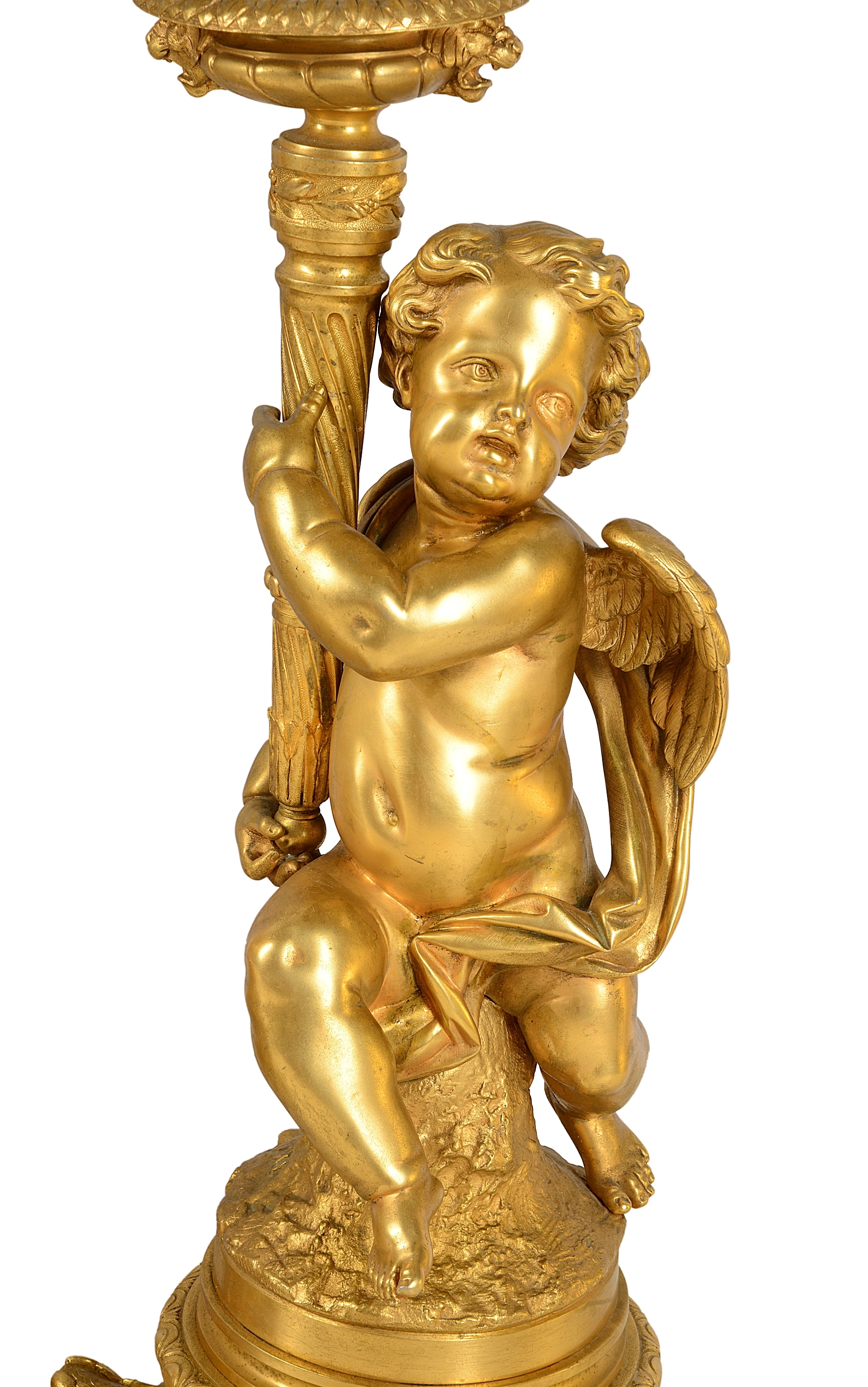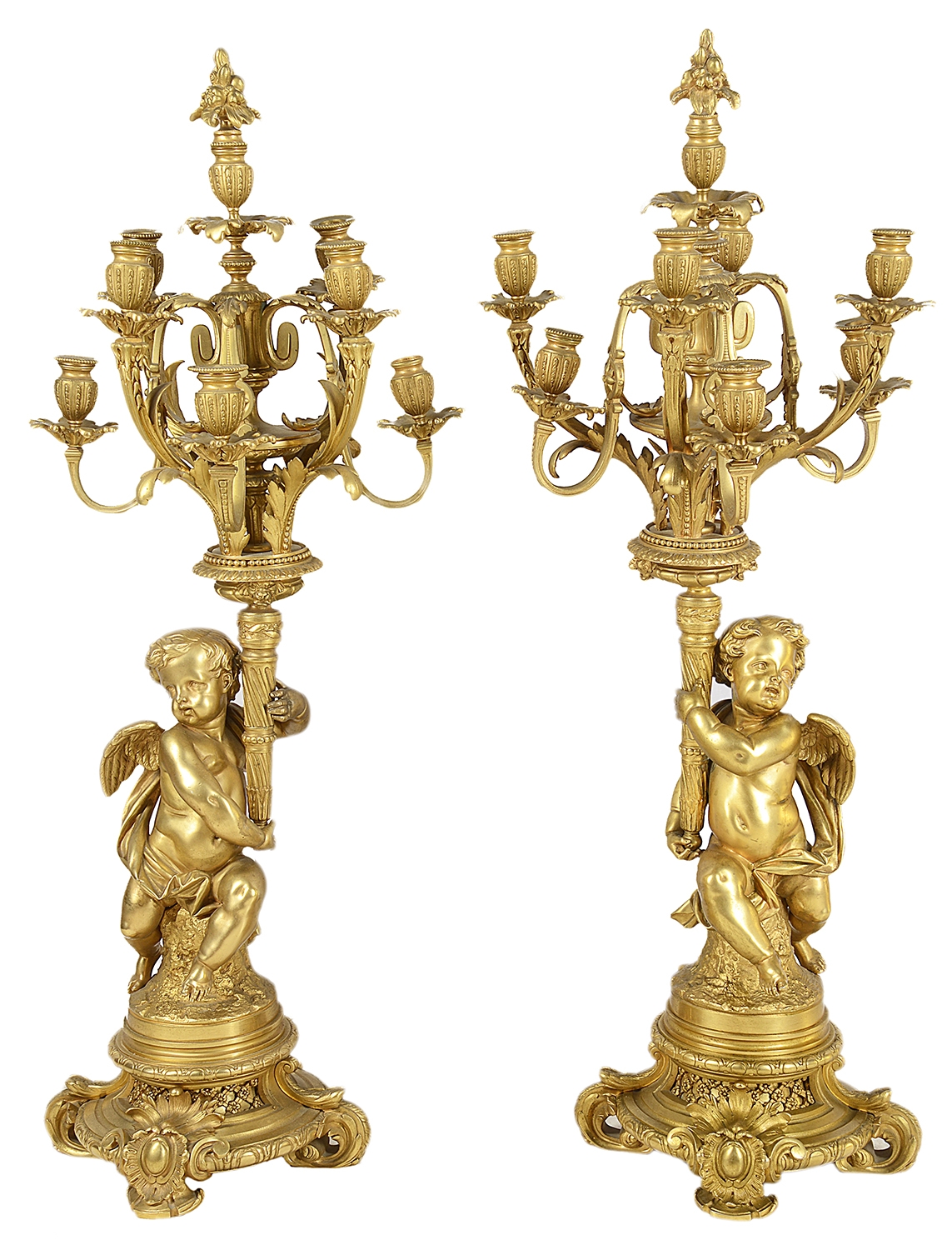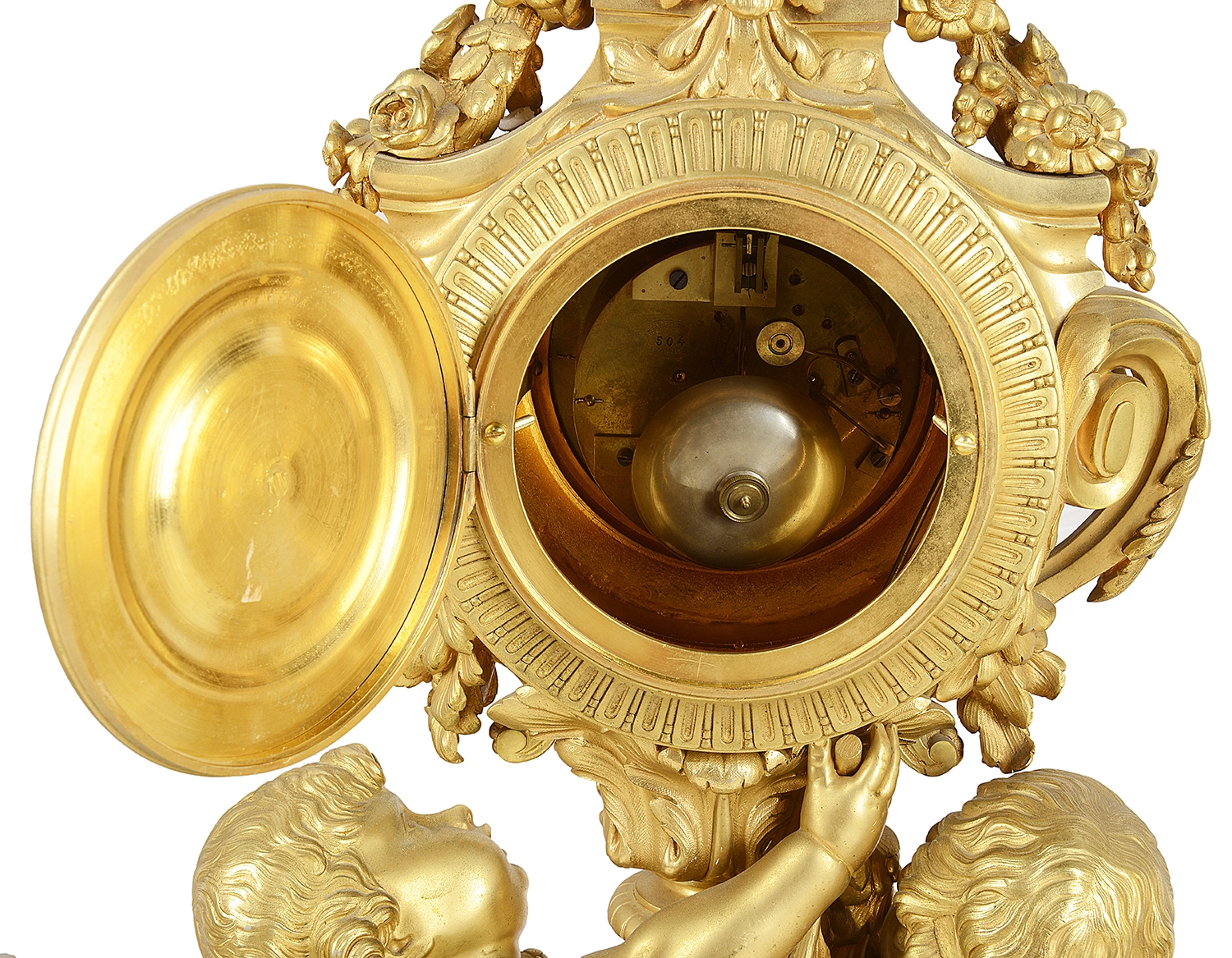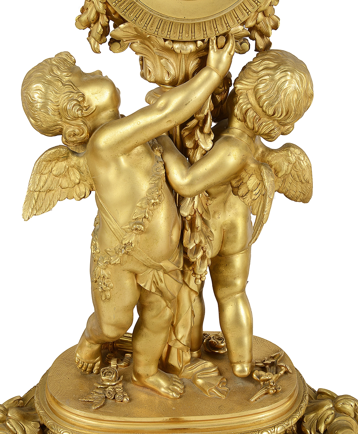 Large Louis XVI style gilded clock garniture.