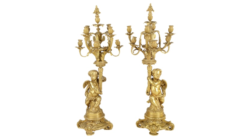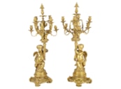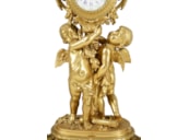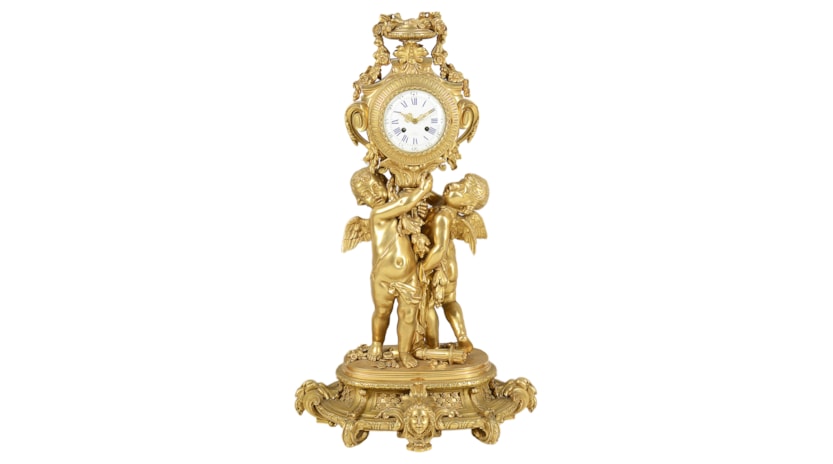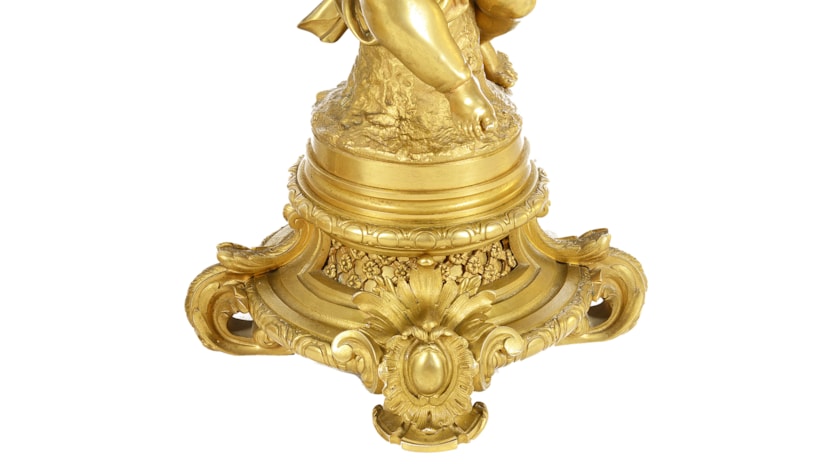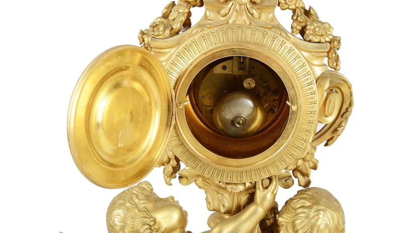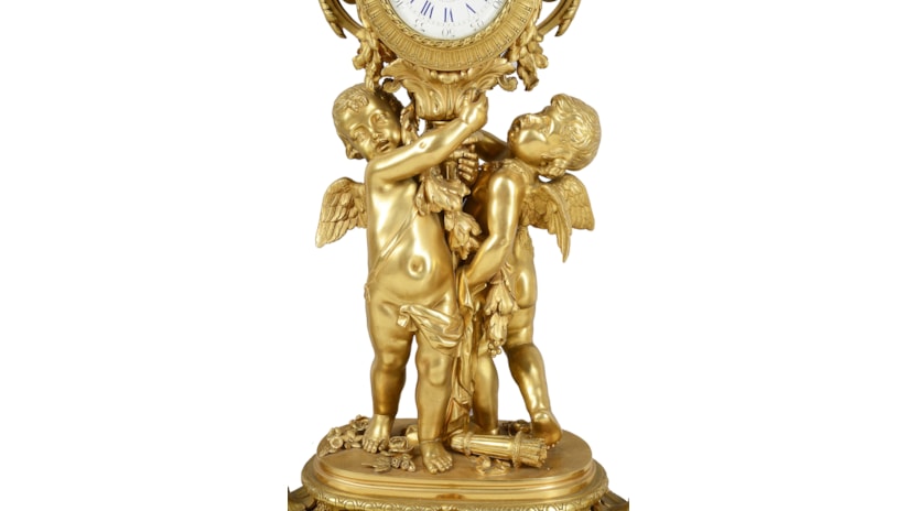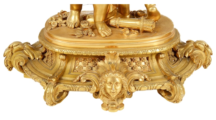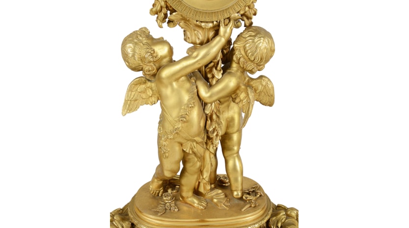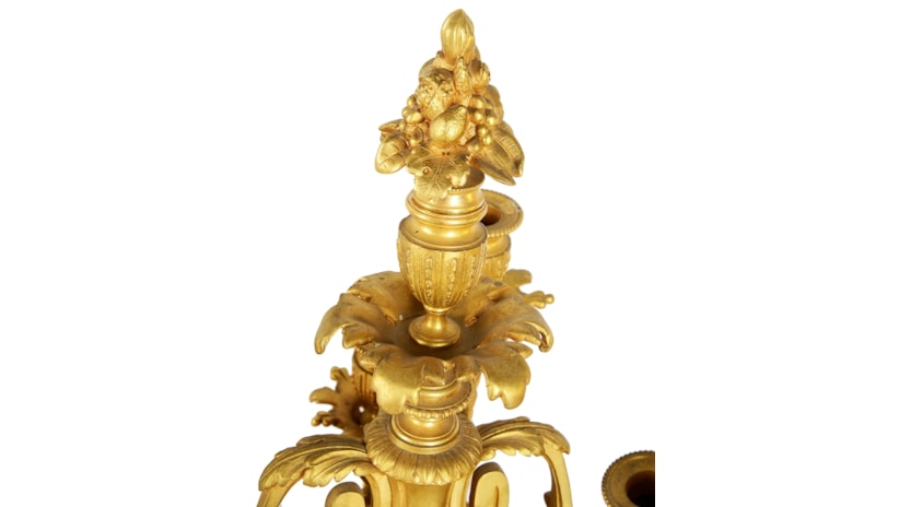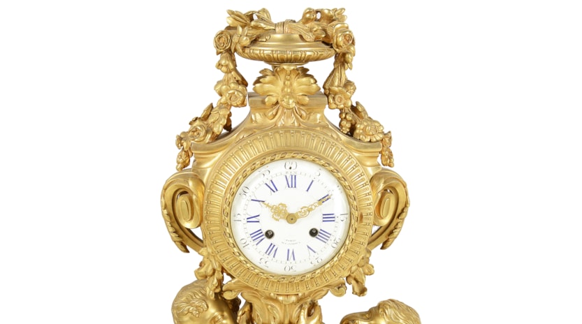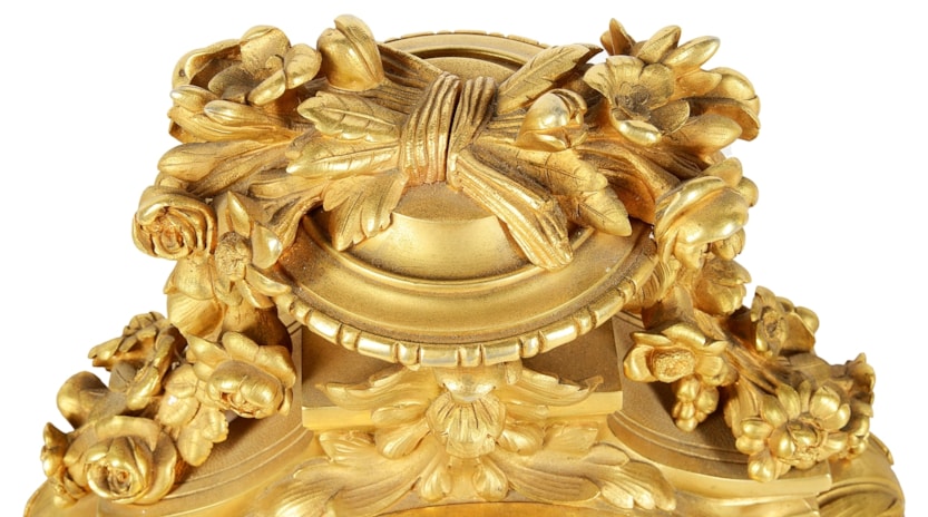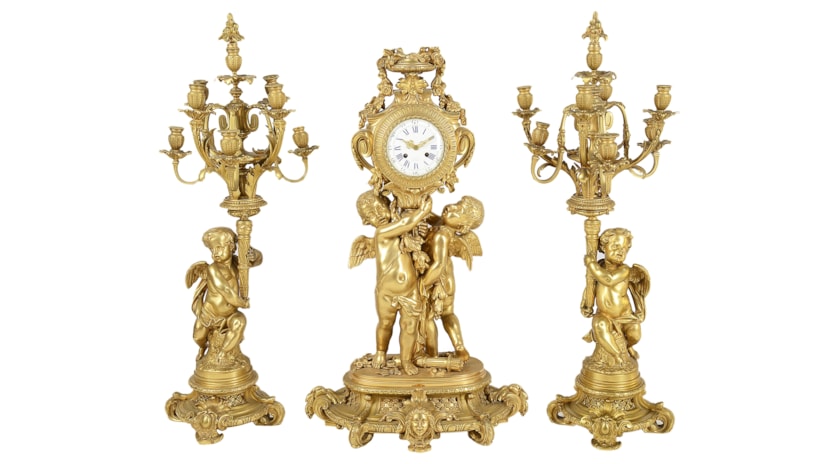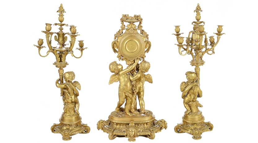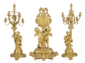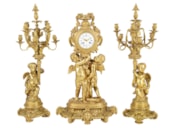 Large Louis XVI style gilded clock garniture.