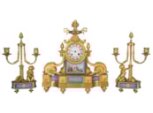 French Sevres Style Clock Set, 19th Century.