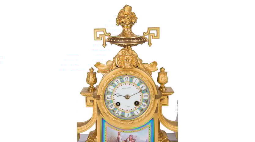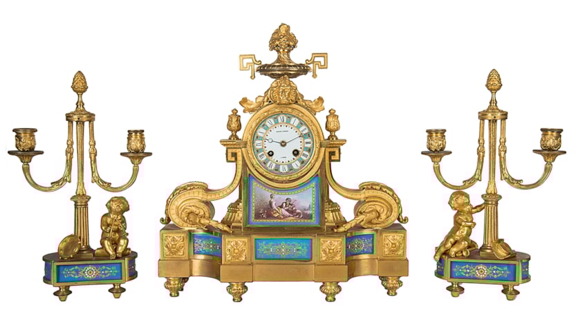 French Sevres Style Clock Set, 19th Century