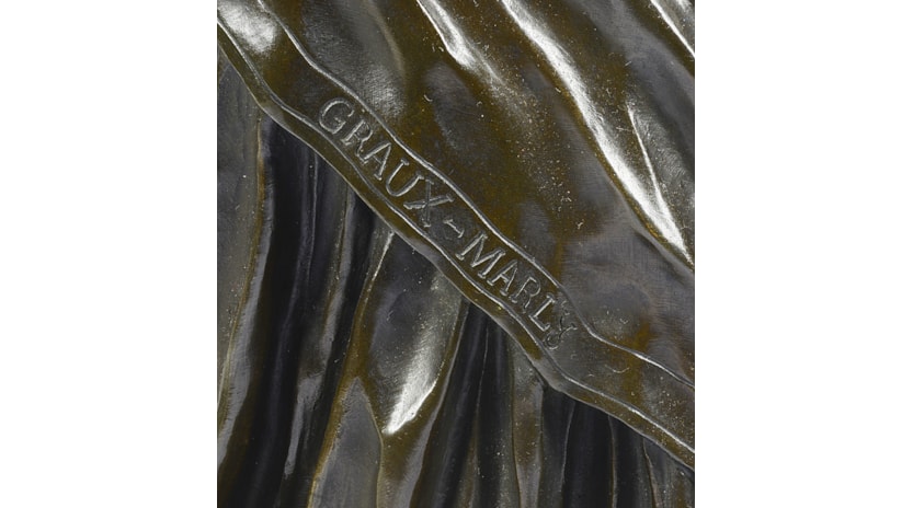 A very good quality large 19th century French bronze statue of a classical female figure signed; Graux Marly Jules Graux's foundry was based at 8 rue du Parc-Royal from 1860. By 1880 his sons took over the business and their works were stamped GRAUX-MARLY or GRAUX-MARLY FRèRES. The foundry produced bronze and gilt bronze candelabra, clocks, statues and other fine decorative works of art. They cast bronzes by many of the most renowned sculptors of the day including Carpeaux, Pradier, Fremiet and Carrier-Belleuse, as well as reproducing important and popular antique, Renaissance and later models.