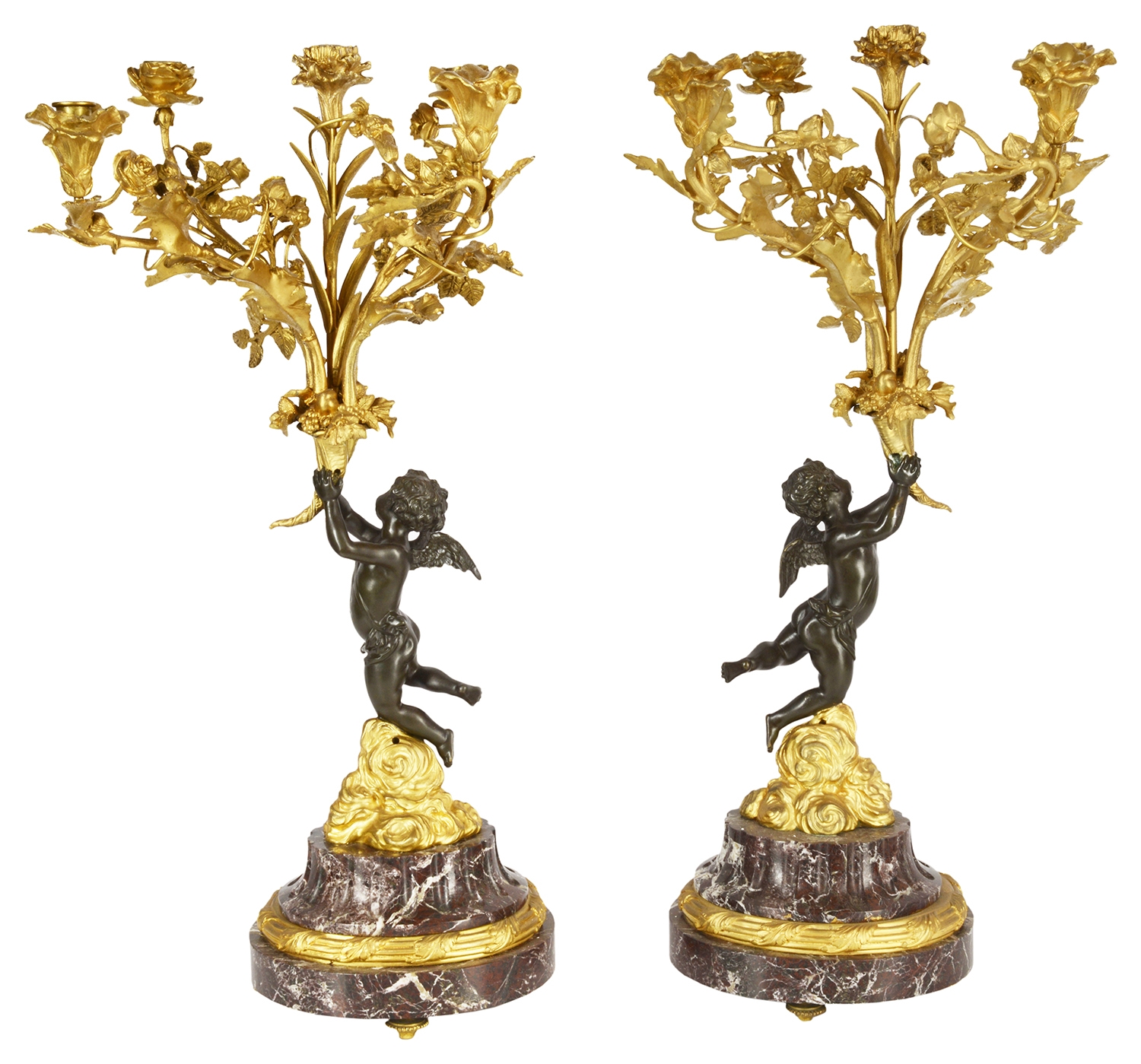 Large Pair of Louis XVI Style Gilded Candelabra, 19th Century