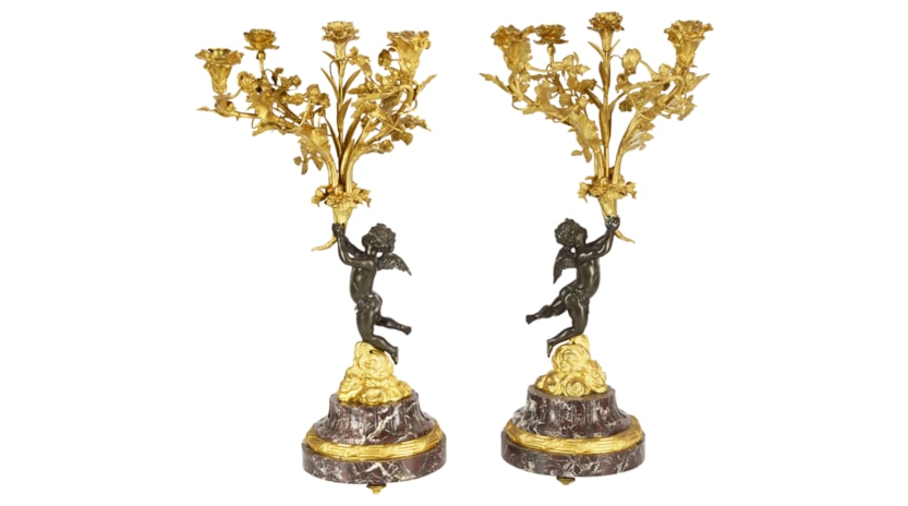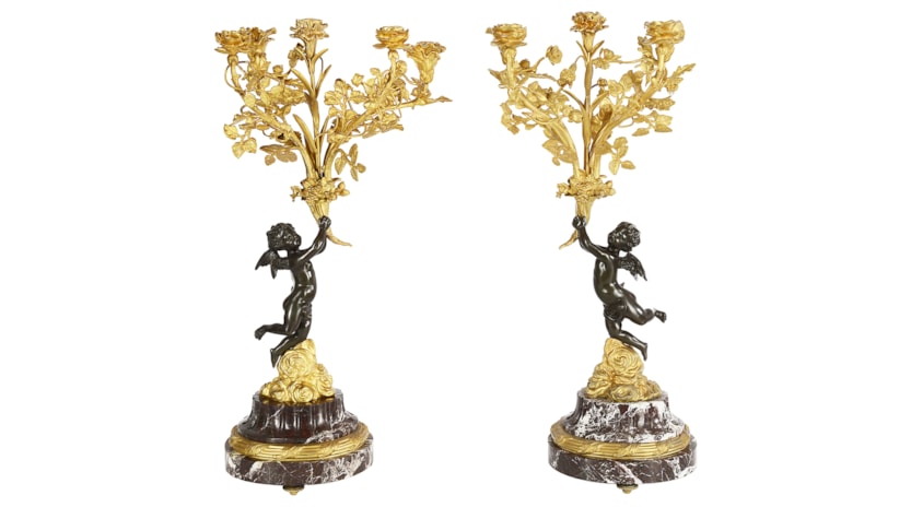 Large Pair of Louis XVI Style Gilded Candelabra, 19th Century