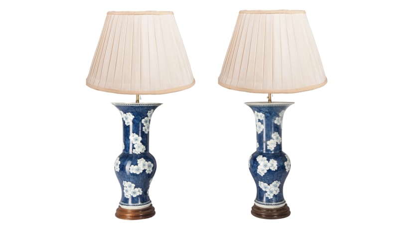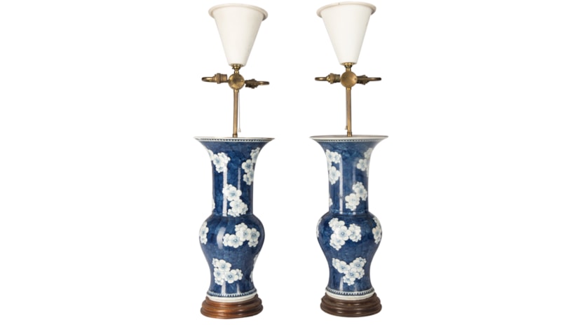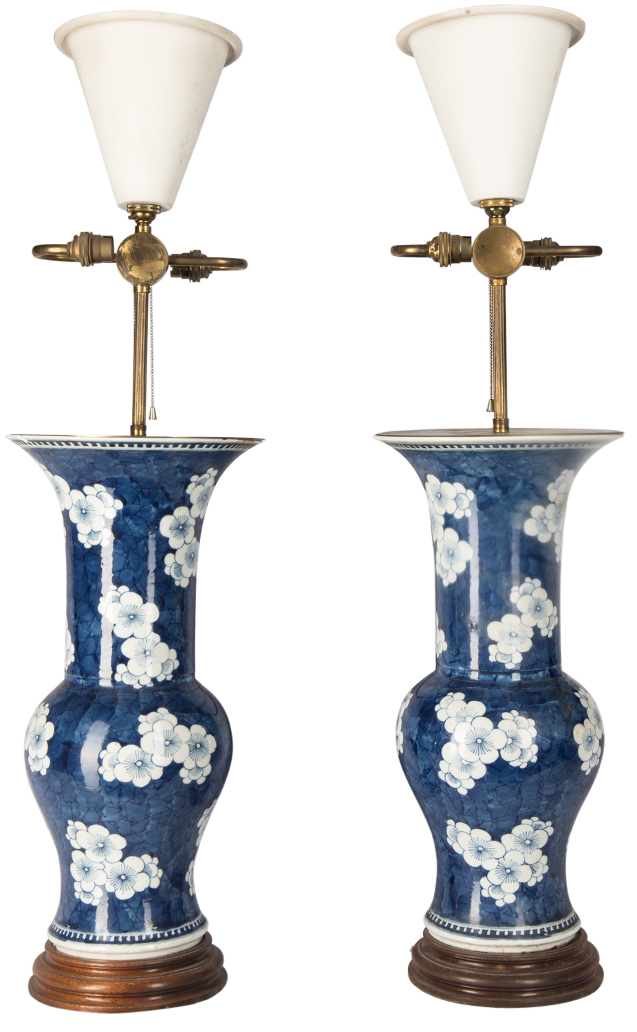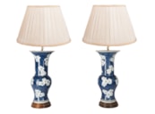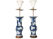 Pair of 19th Century Chinese Blue and White Vases/Lamps