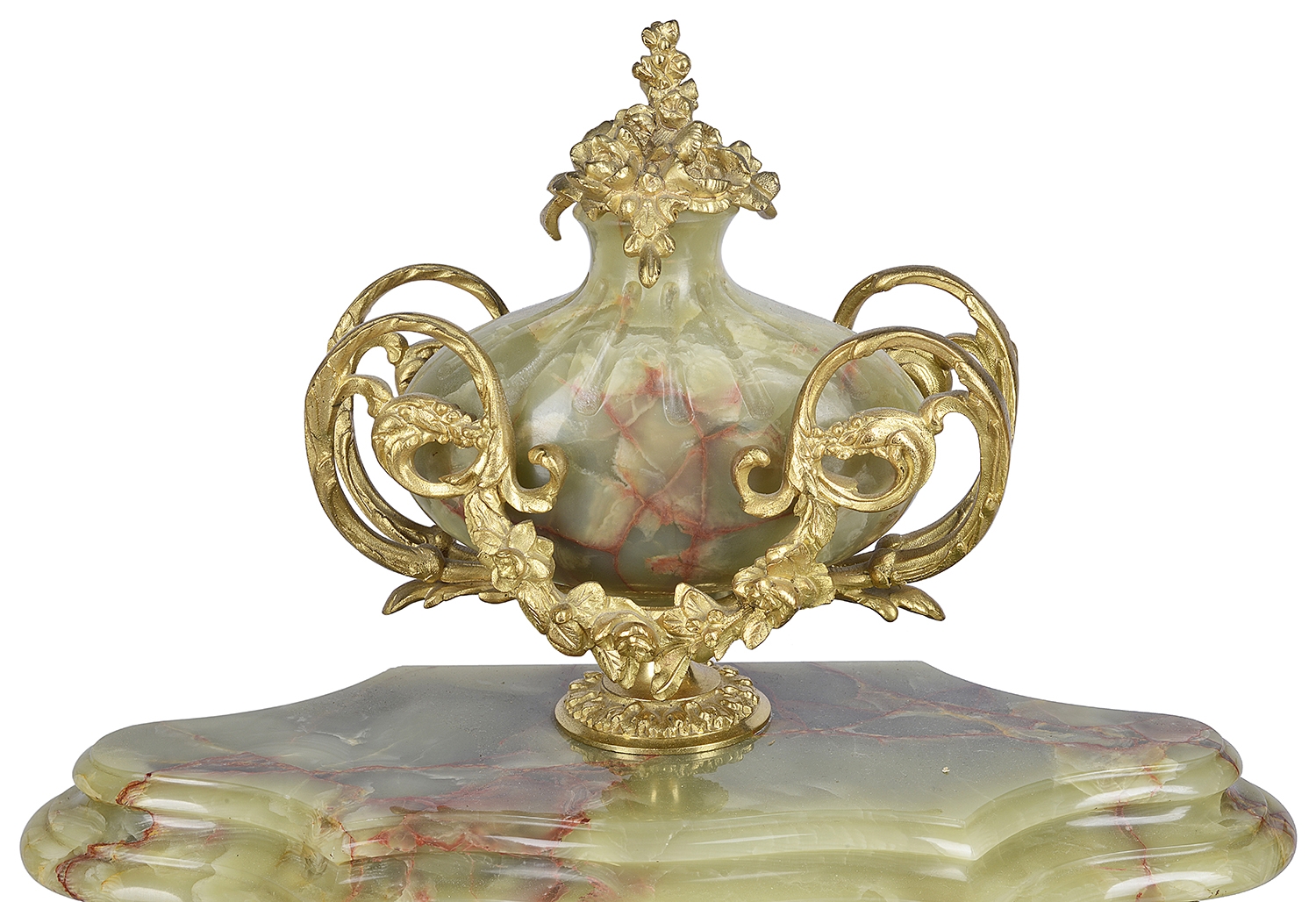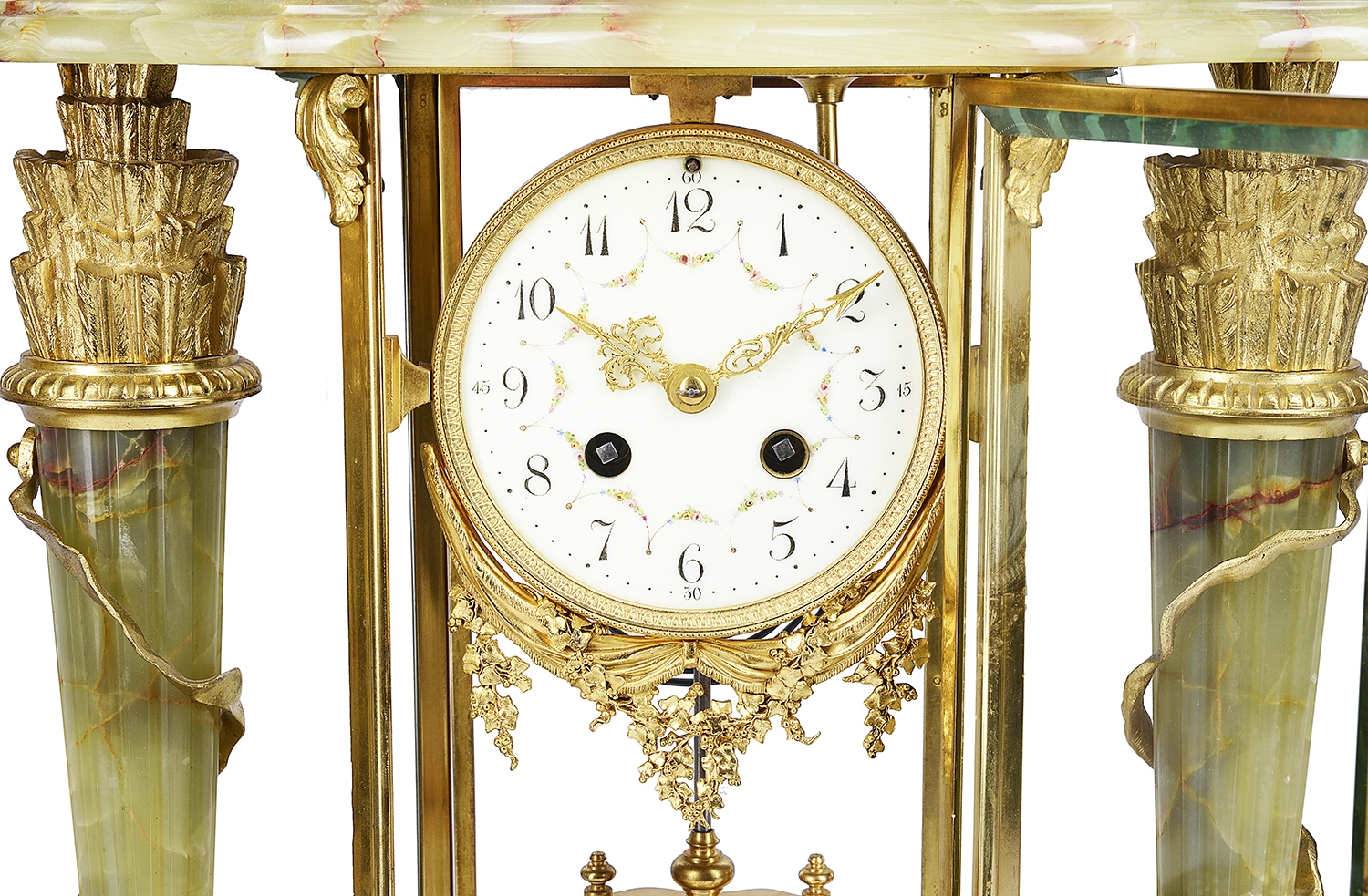 Home > Large Louis XVI Style Onyx and Ormolu Clock Set, 19th Century