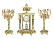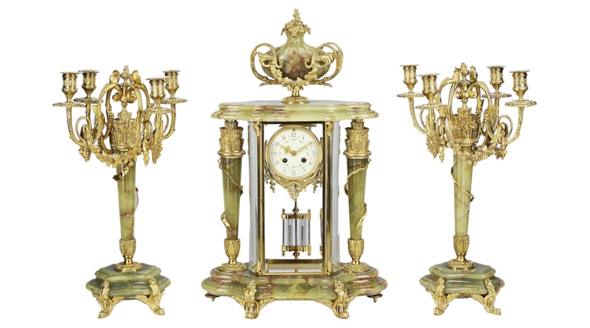 Large Louis XVI Style Onyx and Ormolu Clock Set, 19th Century