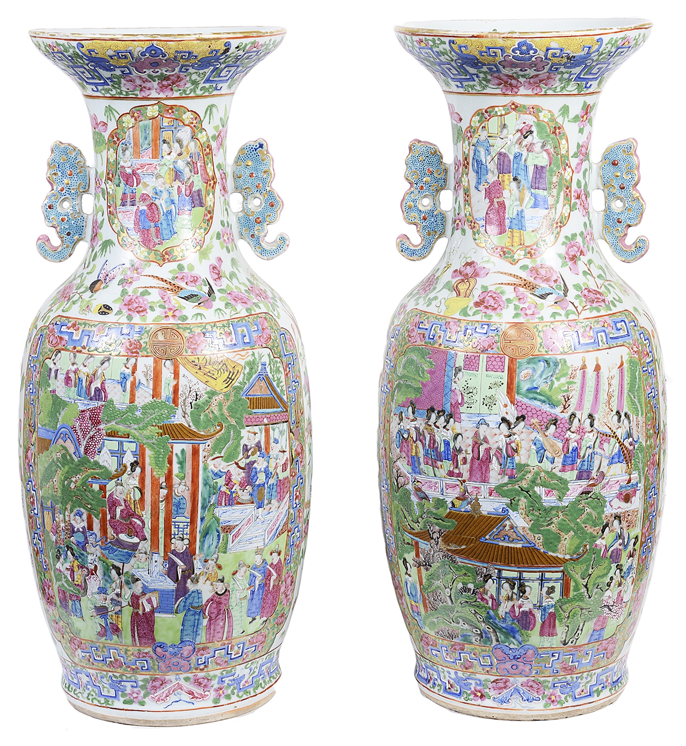 Large pair Chinese Cantonese / Rose medallion vases, 19th Century.