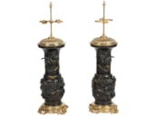 Large Pair of Japanese 19th Century Bronze Vases / Lamps