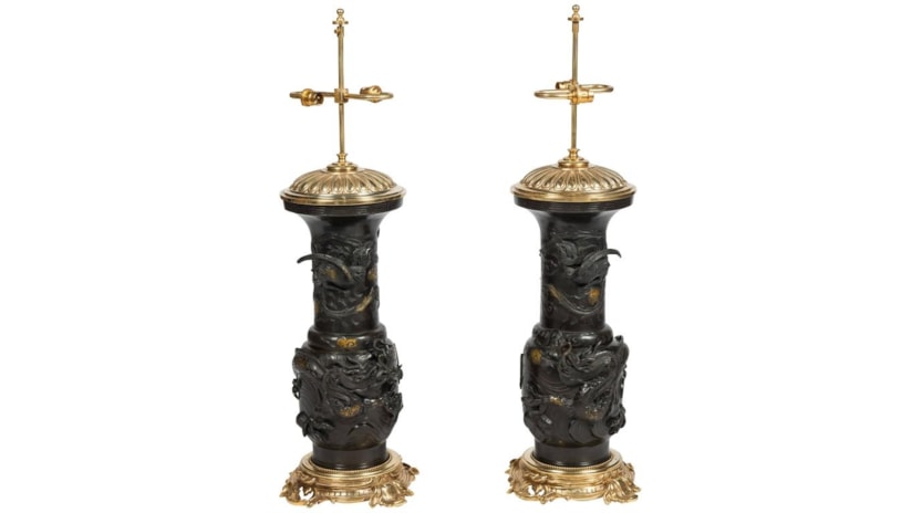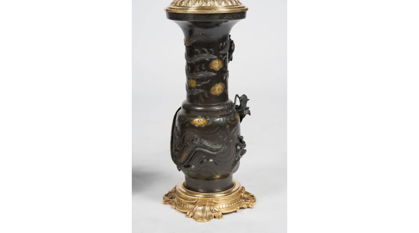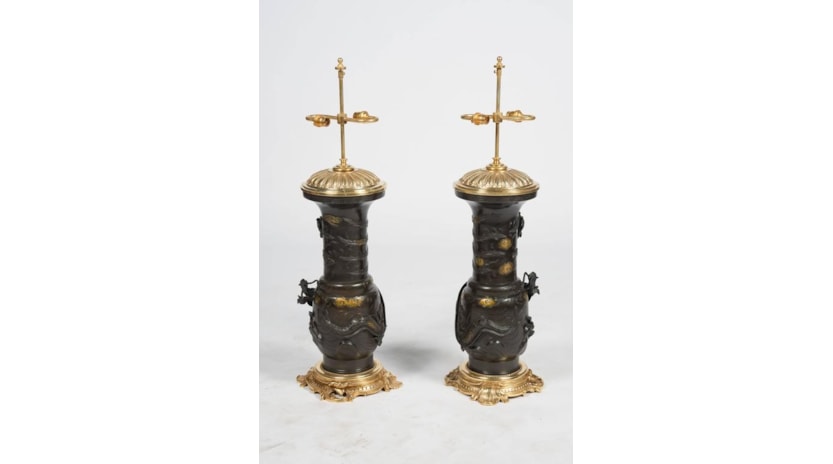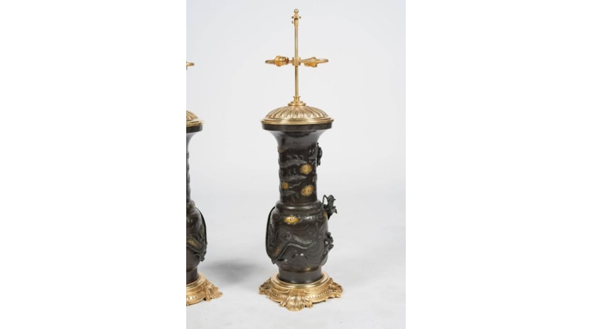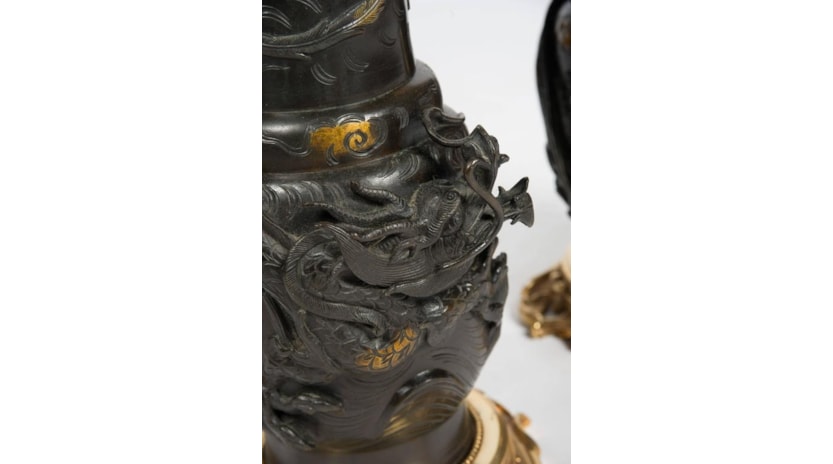 Large Pair of Japanese 19th Century Bronze Vases / lamps